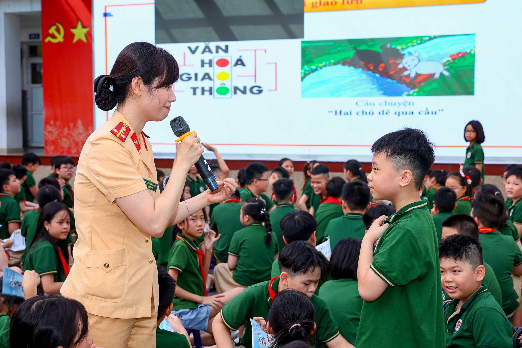 Một số hình ảnh Cục CSGT tuyên truyền về mô hình cổng trường ATGT tại trường Tiểu học Việt Nam- Cuba trên địa bàn quận Ba Đình, Hà Nội