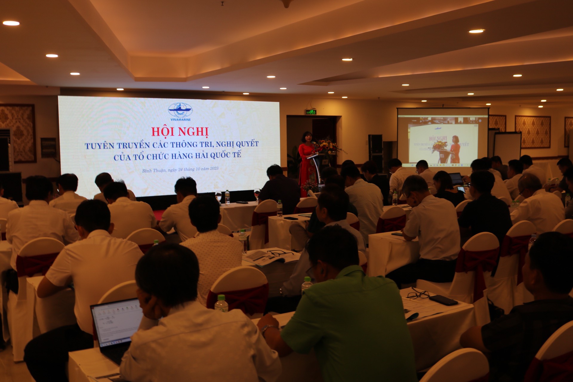 Thực hiện Kế hoạch công tác năm 2023 của Ban Thư ký IMO Việt Nam, ngày 24/10 tại Bình Thuận, Cục Hàng hải VN tổ chức Hội nghị tuyên truyền, phổ biến các Thông tri, Nghị quyết của IMO. Dưới hình thức kết hợp trực tiếp và trực tuyến, Hội nghị có sự tham dự của gần 200 cán bộ, công chức, viên chức các đơn vị trực thuộc Cục Hàng hải VN, các doanh nghiệp hoạt động trong lĩnh vực hàng hải.