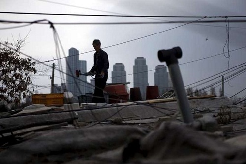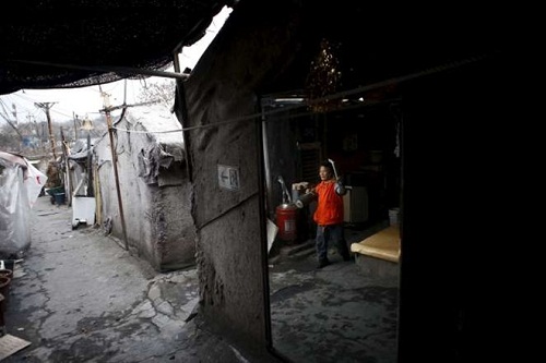 Người công nhân trở về nhà sau khi kết thúc một ngày làm việc. Nhiều người dân tại Guryong phải sống nhờ vào trợ cấp của nhà nước với khoản tiền ít ỏi, 200.000 won (187 USD). Một bà mẹ 5 con nói: “Tôi ghen tị với những người giàu sống trong các căn hộ cao cấp đằng kia. Tôi luôn cầu nguyện mỗi ngày để các con không phải chịu số phận như mình”.