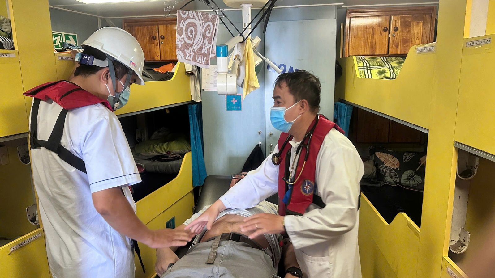 Đến 10h00 cùng ngày, bệnh nhân đã được đưa vào bờ và bàn giao cho cơ quan chức năng, đại diện chủ tàu để chuyển đến Bệnh viện Pháp Việt, thành phố Hồ Chí Minh để cấp cứu, điều trị chuyên sâu.
