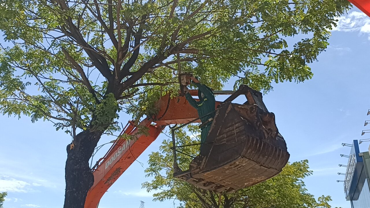 "Việc sử dụng máy đào, múc đất để phục vụ nâng hạ người lên xuống, thao tác cắt tỉa cây xanh trên cao là hết sức nguy hiểm", ông Lê Huy Hoàng nói.