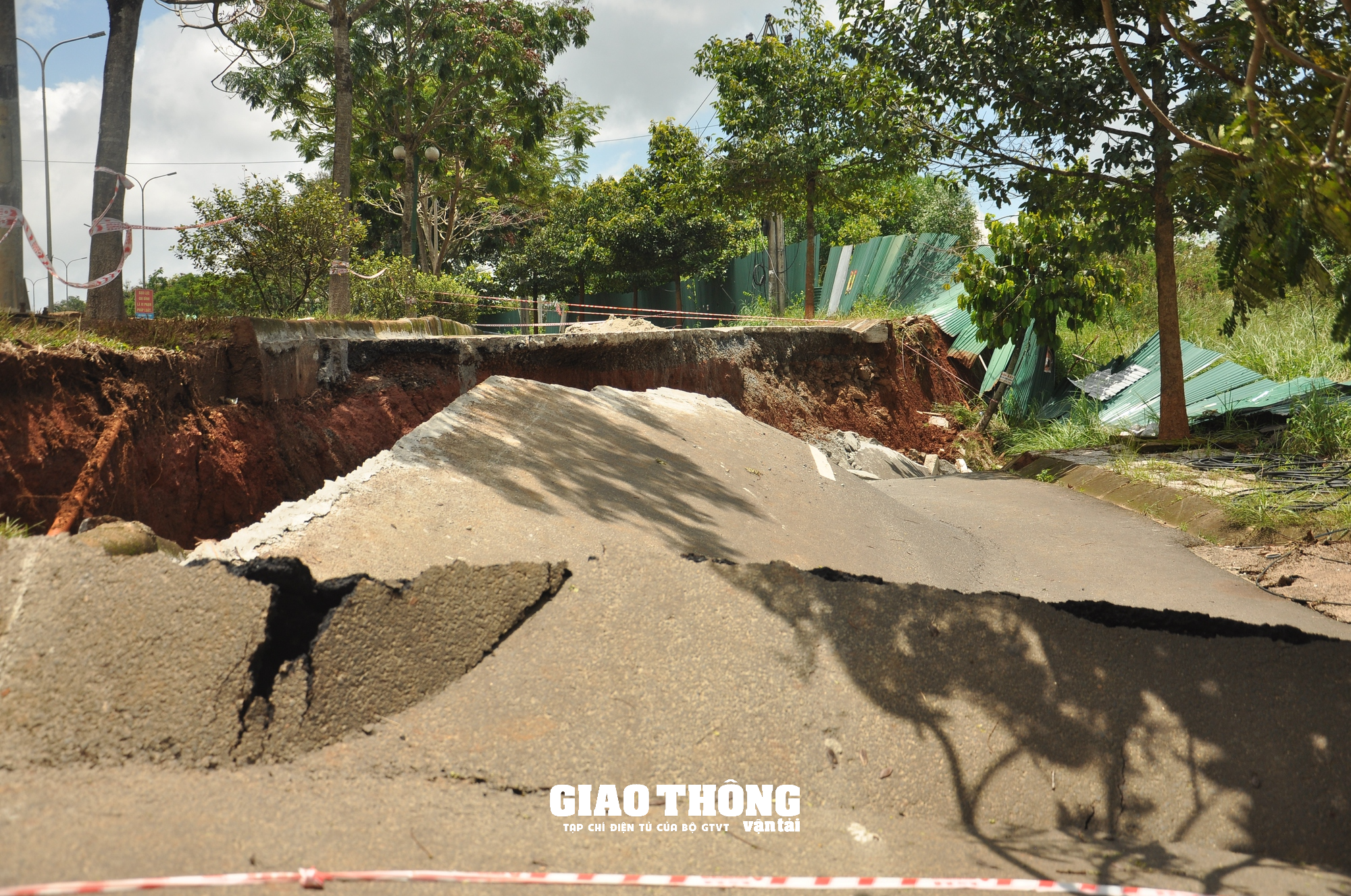 Đối với công trình đường Hồ Chí Minh tại Km 1900+350 (phường Nghĩa Thành, TP.Gia Nghĩa), từ ngày 2/8 xảy tình trạng sạt trượt và xuất hiện các vết nứt rộng từ 1cm đến 10cm, có chiều dài ảnh hưởng khoảng 200m. Đến ngày 7/8, diễn biến các vết nứt gãy, sạt trượt hết sức phức tạp, chiều dài lớn nhất khoảng 40m, chiều sâu khoảng 4,5m gây mất ổn định kết cấu hạ tầng giao thông, ảnh hưởng lớn đến hoạt động tham gia giao thông tại khu vực, ảnh hưởng đến an toàn tính mạng và tài sản của 16 hộ dân phường Nghĩa Thành.