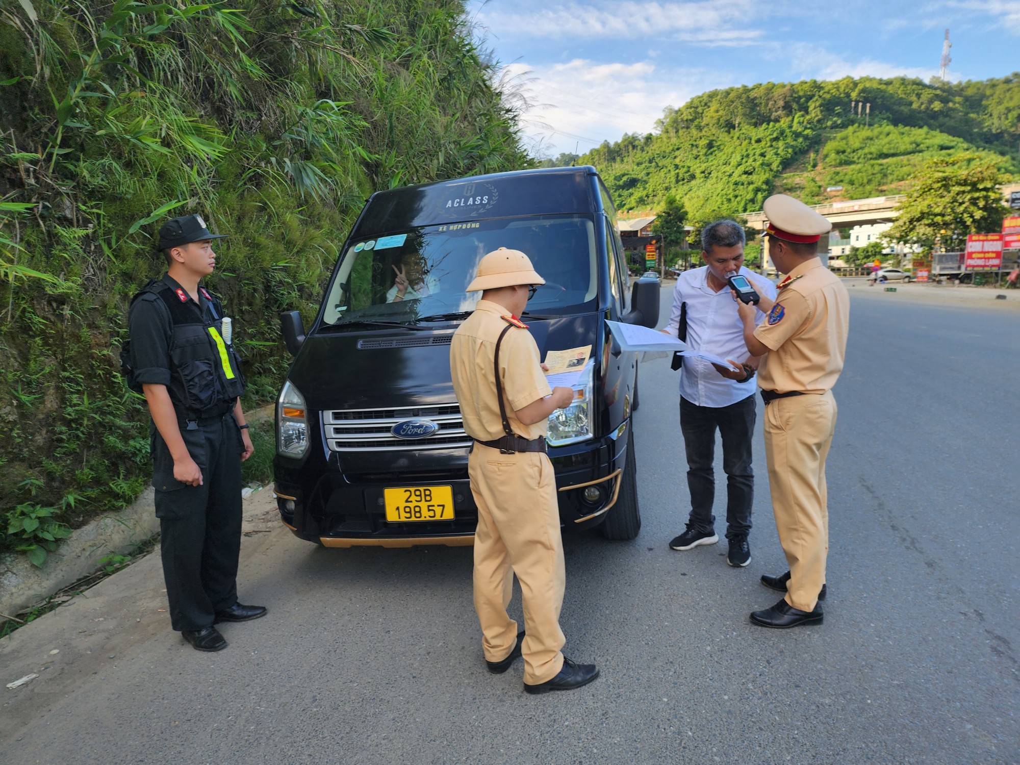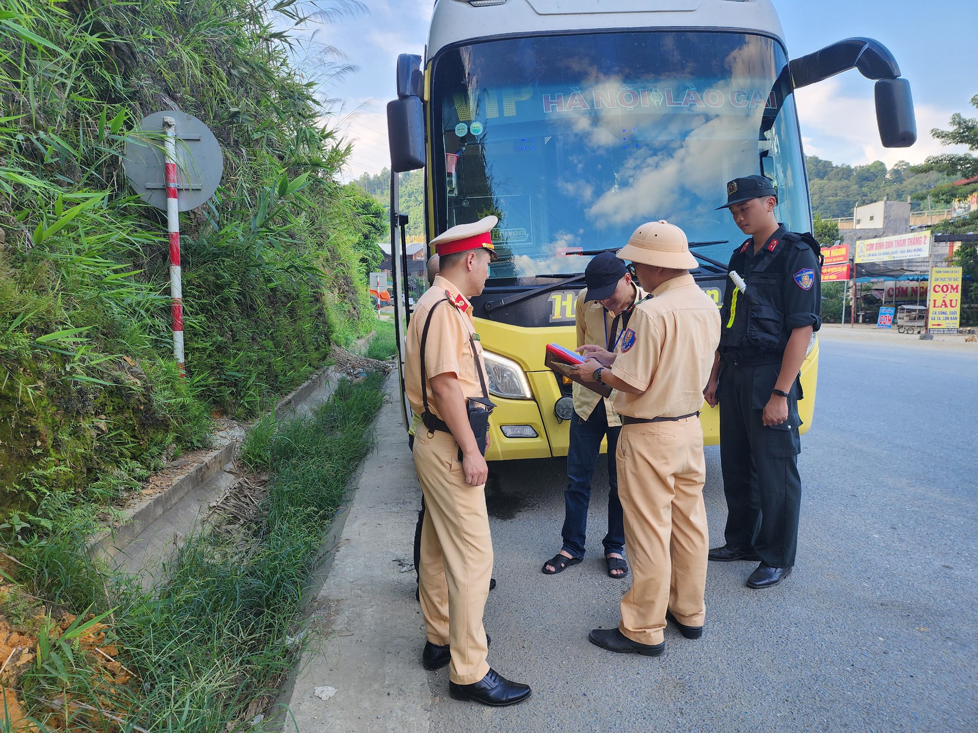 Phòng CSGT Công an tỉnh Lào Cai kiểm tra ô tô khách lưu thông trên địa bàn