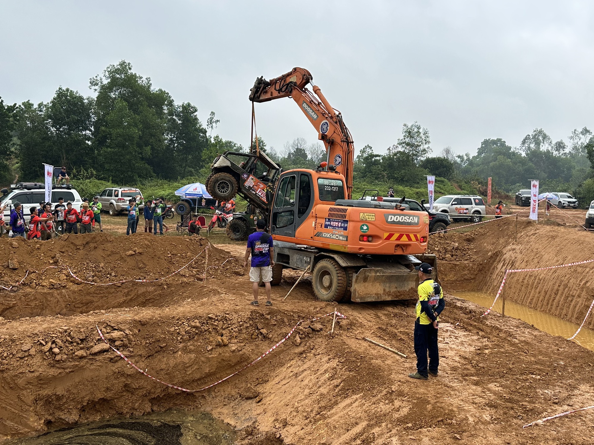 Hai đội đua 411 và 410 thi đấu dũng mãnh ngay từ vòng đầu, nhưng cách họ ra khỏi đường đua chỉ bằng một chiếc cần của xe múc.