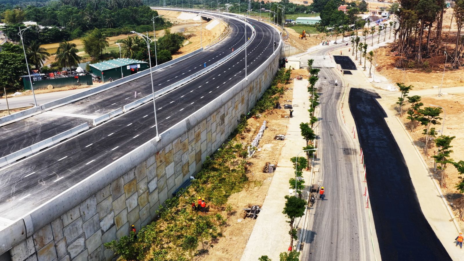 Trước bối cảnh đó, sau khi tiến hành phân tích kỹ lưỡng tiêu chuẩn TCVN 11823-2017 và tham khảo các hệ tiêu chuẩn quốc tế như AASHTO LRFD, BS8006-1, các đơn vị liên quan đã lựa chọn giải pháp tường chắn đất có cốt (MSE) sử dụng dải gia cường Polymer cho các phạm vi tường chắn có chiều cao trên 3,5m nhờ tính linh hoạt, cho phép điều chỉnh trong quá trình thi công. Việc áp dụng giải pháp này được xem là phù hợp nhất với điều kiện địa chất đặc thù của khu vực ven biển.