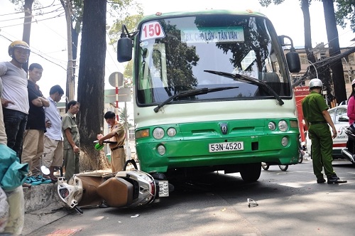 Vào 9h50 sáng nay 9/5, chiếc xe buýt mang BKS 53N – 5420 chạy trên đường Nguyễn Đình Chiểu hướng từ quận 3 về quận 10, TPHCM; khi vừa qua khỏi giao lộ Phạm Ngọc Thạch (thuộc phường 6, quận 3) thì xảy ra va chạm với 1 xe đạp và 1 xe máy đi cùng chiều.