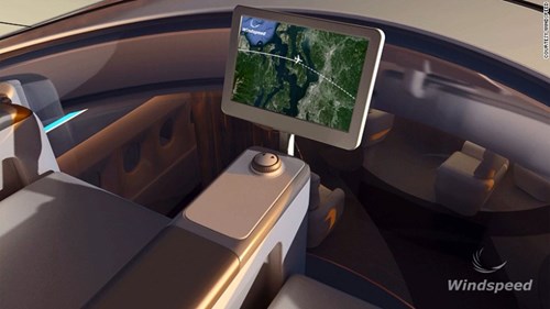 | Hình ảnh mô phỏng cho thấy ghế ngồi được đặt trong mái vòm trong suốt trên nóc máy bay. |