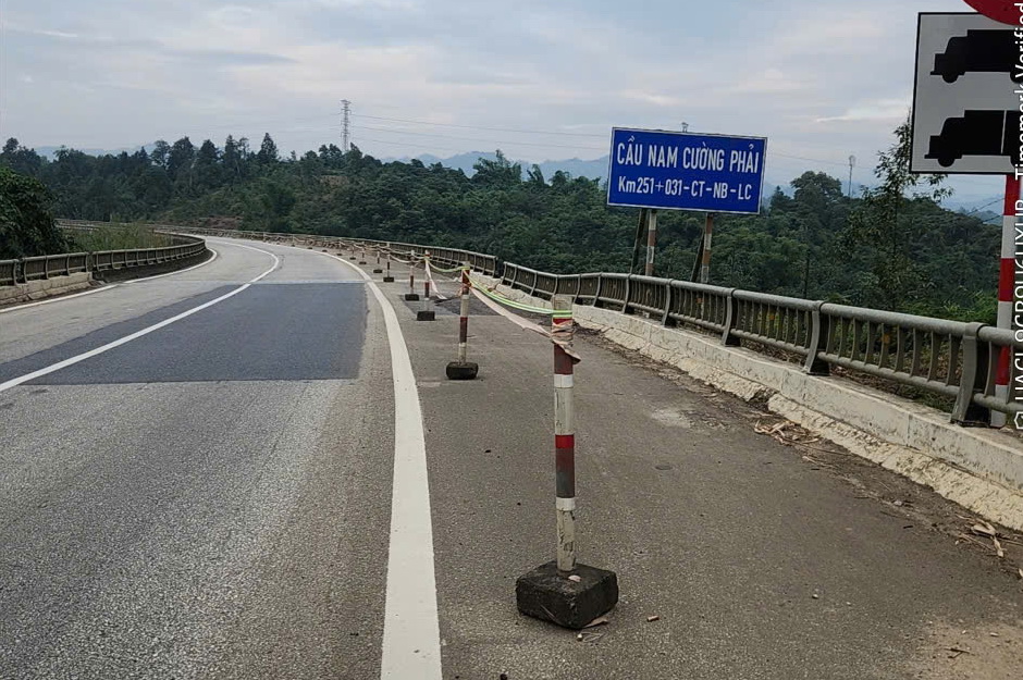 Theo đó, sau khi xem xét, để phù hợp với điều kiện thực tế và và triển khai thi công đảm bảo an toàn công trình, an toàn giao thông, Cục Đường bộ VN chấp thuận đề nghị của Khu QLĐB I tiếp tục triển khai dự án Sửa chữa đột xuất cầu Nam Cường Km251+031 (đơn nguyên phải tuyến) trên tuyến cao tốc Nội Bài - Lào Cai theo hồ sơ đã được hoàn thiện trên cơ sở kết quả quan trắc và điều chỉnh giai đoạn thi công (bố trí thi công gia cố ổn định mái ta luy trước, sau đó thi công sửa chữa kết cấu cầu) để có thêm thời gian quan trắc, theo dõi diễn biến chuyển vị của mố M1 và trụ T1.