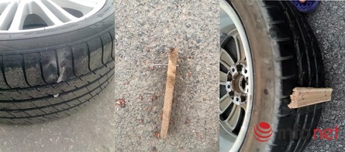 Anh Đỗ Quang Thắng cho biết, khoảng 17h30 ngày 3/5, trên đường từ Lào Cai về Hà Nội, xe của anh bị dính vào đinh đoạn qua cây số 126 (đoạn này là đường 1 làn). Trong lúc chờ lốp nguội để thay lốp sơ-cua, anh đã đi bộ lên một đoạn để xác định vị trí thì nhặt được khoảng gần chục miếng gỗ nhỏ có đóng đinh rất giống nhau. “Rất may vào lúc đó không có xe nào đi sau nên tôi thoát nạn, nhưng ngồi giữa đường cao tốc thay lốp cũng khiến tôi cảm thấy gai người” – anh Thắng kể thêm.