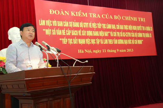 Bí thư Ban cán sự , Bộ trưởng Đinh La Thăng báo cáo về việc tiếp tục lãnh đạo,