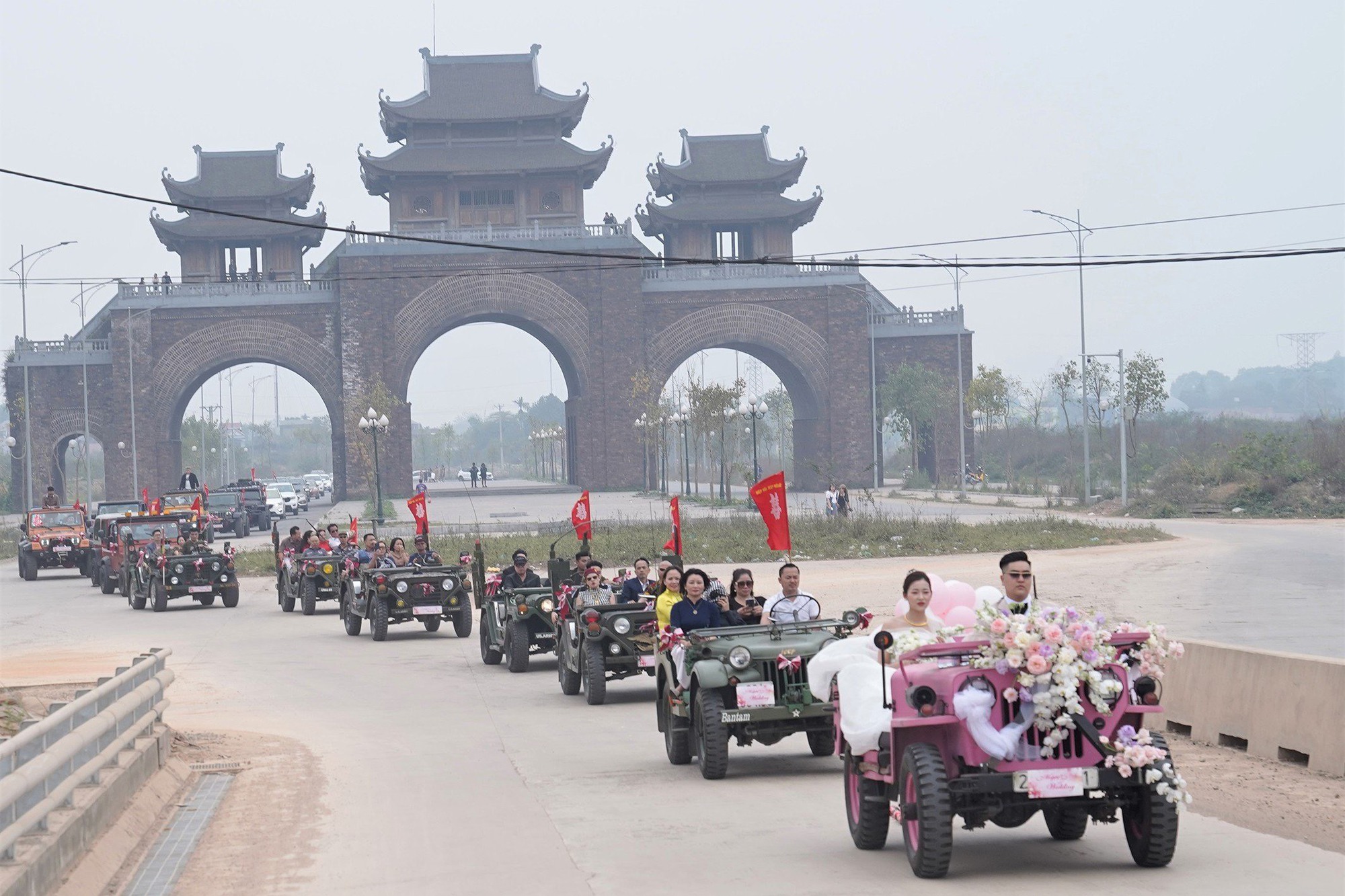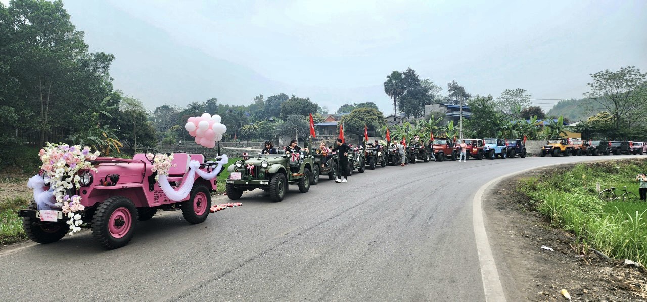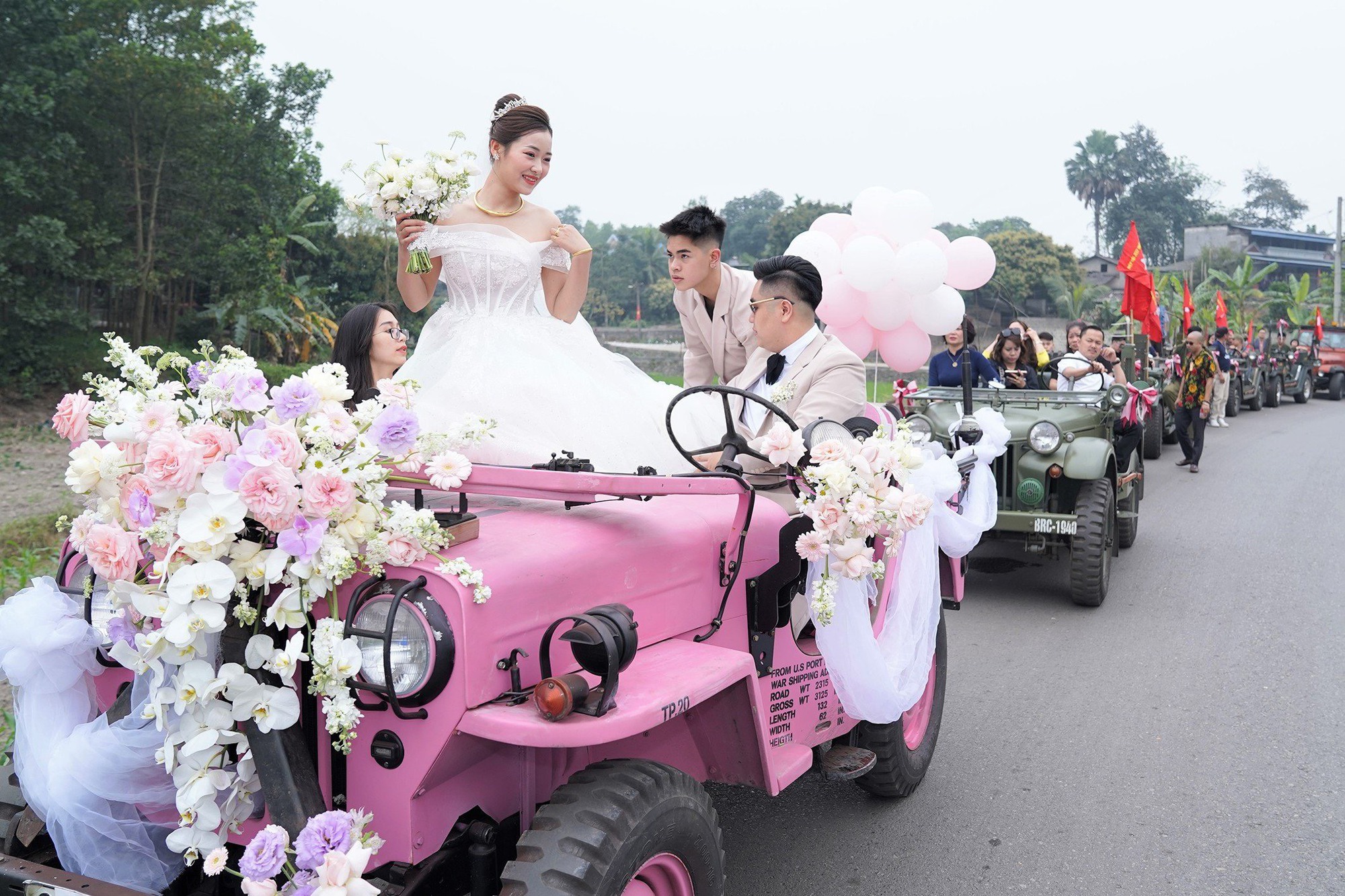 Hàng dài xe Jeep trong lễ đón dâu khiến nhiều người ngưỡng mộ
