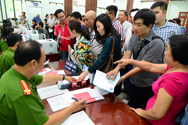 | Người dân nộp hồ sơ làm CMND mới 12 số - Ảnh: Quang Định |
