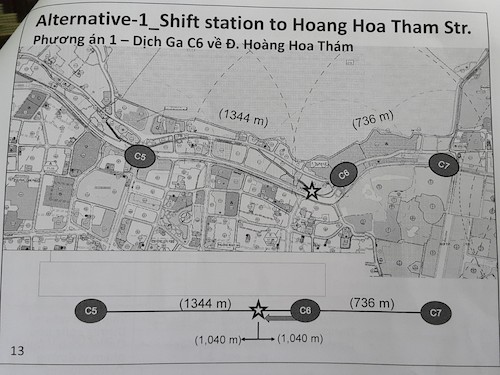 TS. Wessels cho rằng nếu đưa ga C6 về đường Hoàng Hoa Thám thì khoảng cách giữa 3 ga C5-C6-C7 sẽ cân đối là 1.040m
