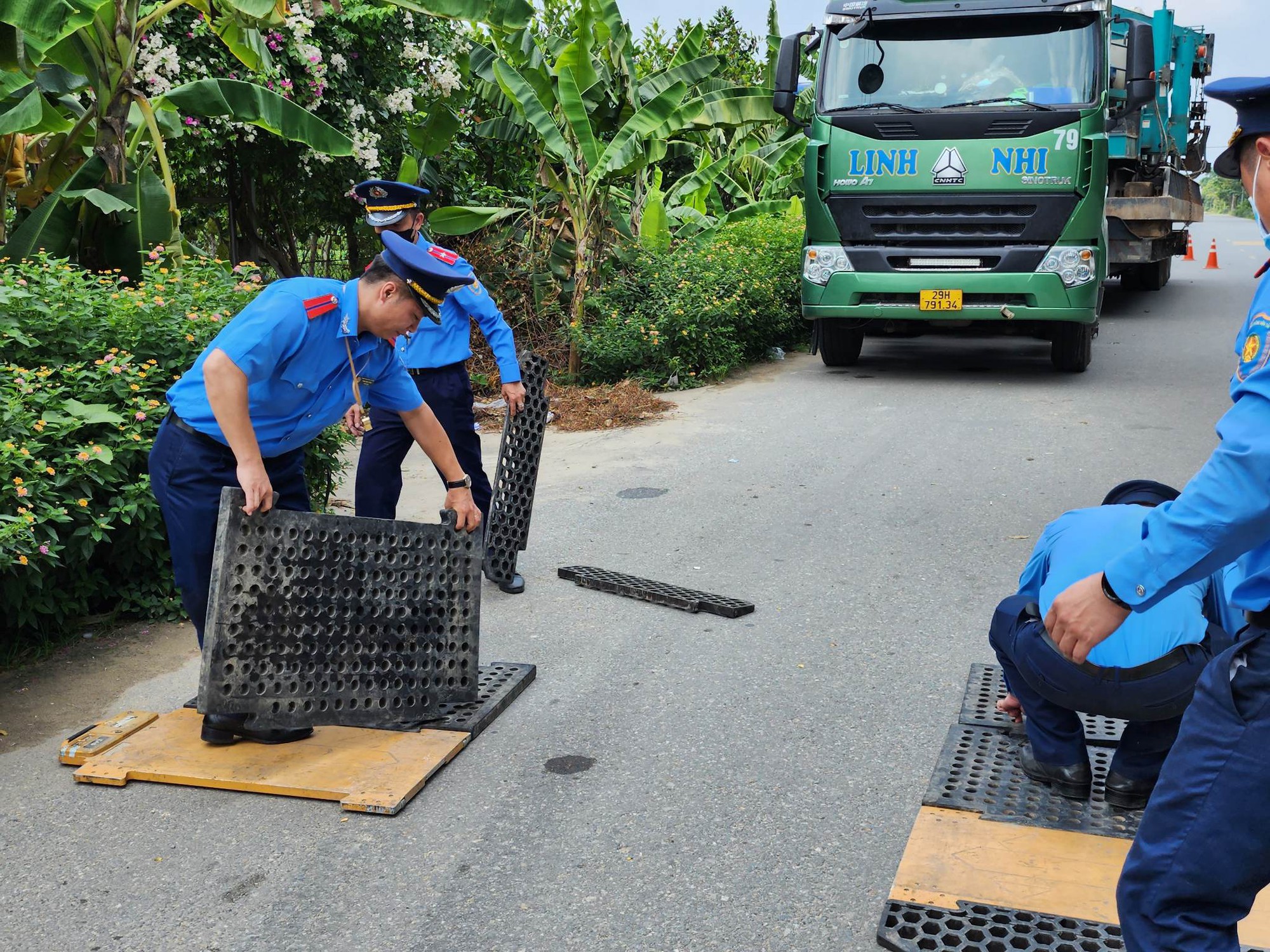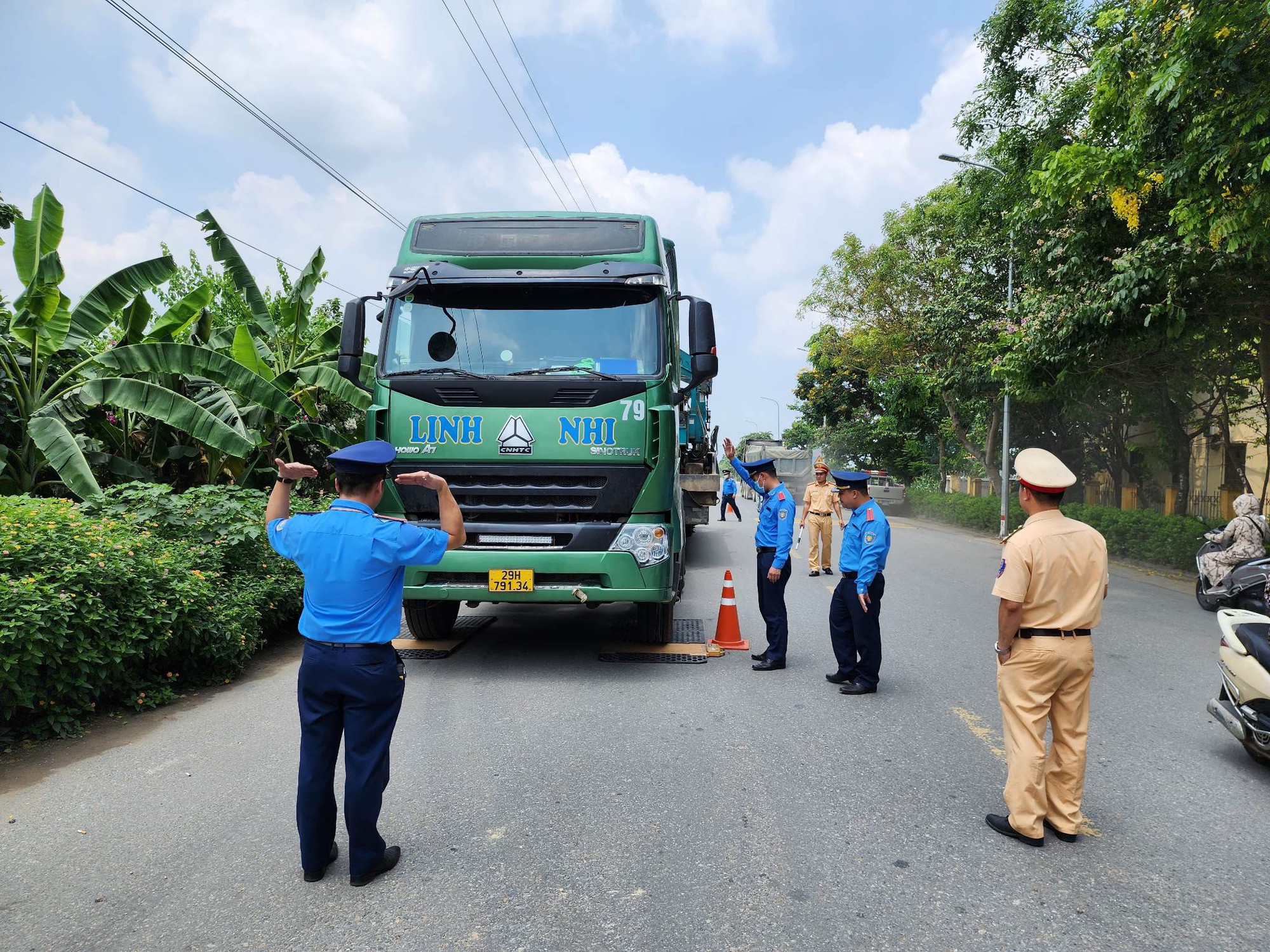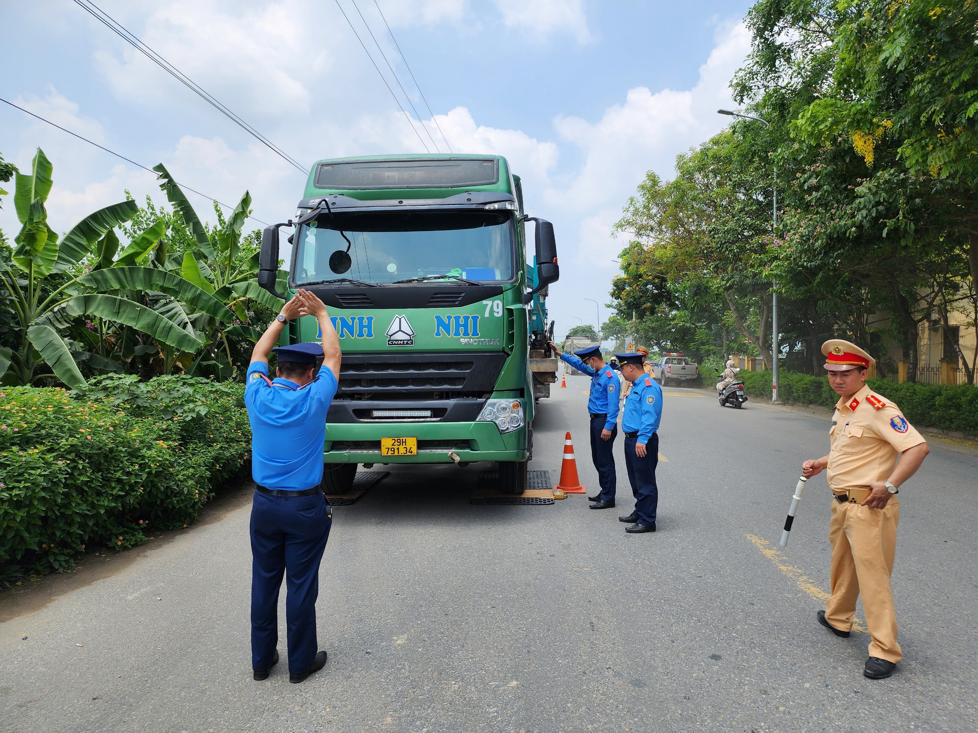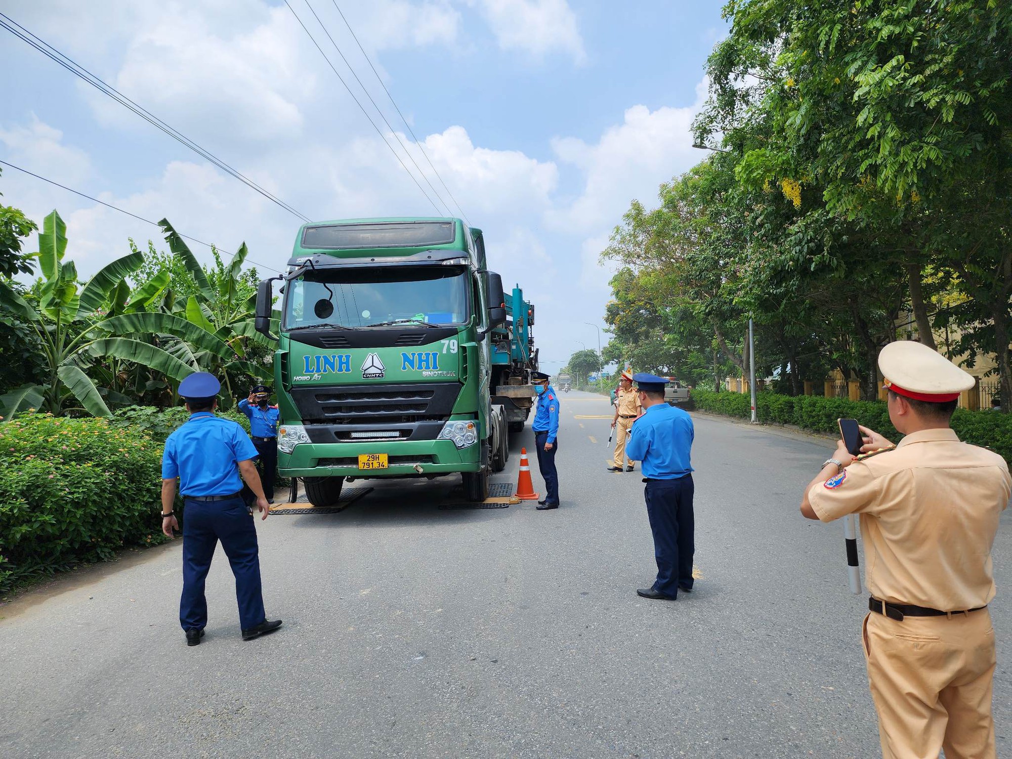 Một số hình ảnh tổ liên ngành TTGT, CSGT huyện Phúc Thọ (Hà Nội) cân kiểm tra xe đầu kéo tại Tỉnh lộ 418 qua địa bàn xã Long Xuyên