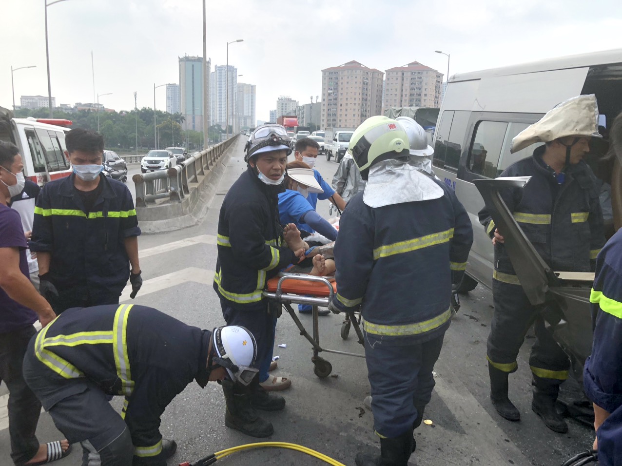 Thông tin ban đầu, vào hồi 13h40 cùng ngày (11/6), Công an quận Hoàng Mai (Hà Nội) nhận tin cứu nạn cứu hộ tại đường vành đai 3 trên cao, khu vực nút giao Linh Đàm hướng về phía Pháp Vân.
