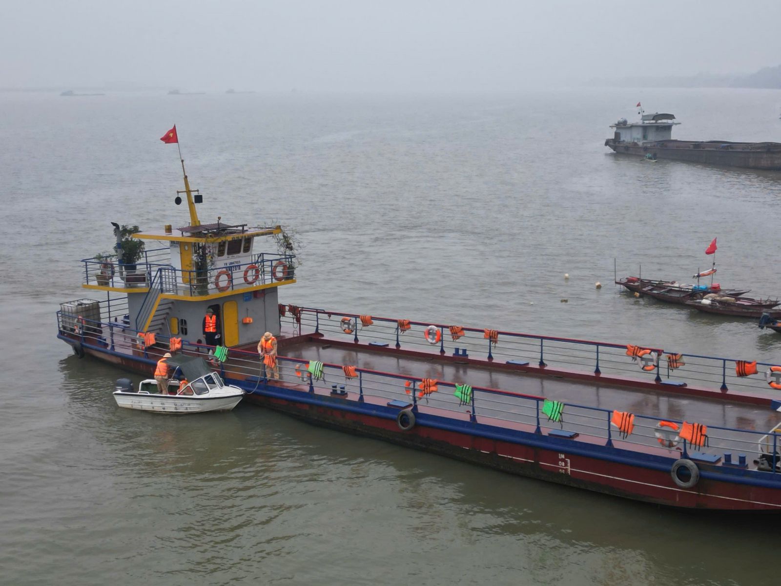 Sáng 26/02 ghi nhận của PV tại Bến phà Thọ An thuộc xã Liên Minh (TP. Hà Nội), tổ công tác thuộc Đội Cảnh sát Đường thuỷ số 1 do Trung tá Trịnh Văn Trường làm Tổ trưởng phối hợp với Công an xã Liên Minh tiến hành kiểm tra giấy tờ chủ bến. Theo ghi nhận, sau khi kiểm tra giấy tờ, tổ công tác Đội Cảnh sát đường thuỷ số 1 cùng Công an xã Liên Minh lên phà tuyên truyền trực tiếp đến hành khách, nhắc nhở khách đi phà mặc áo phao, sử dụng cụ nổi đảm bảo ATGT, phòng sự cố bất ngờ xảy ra.