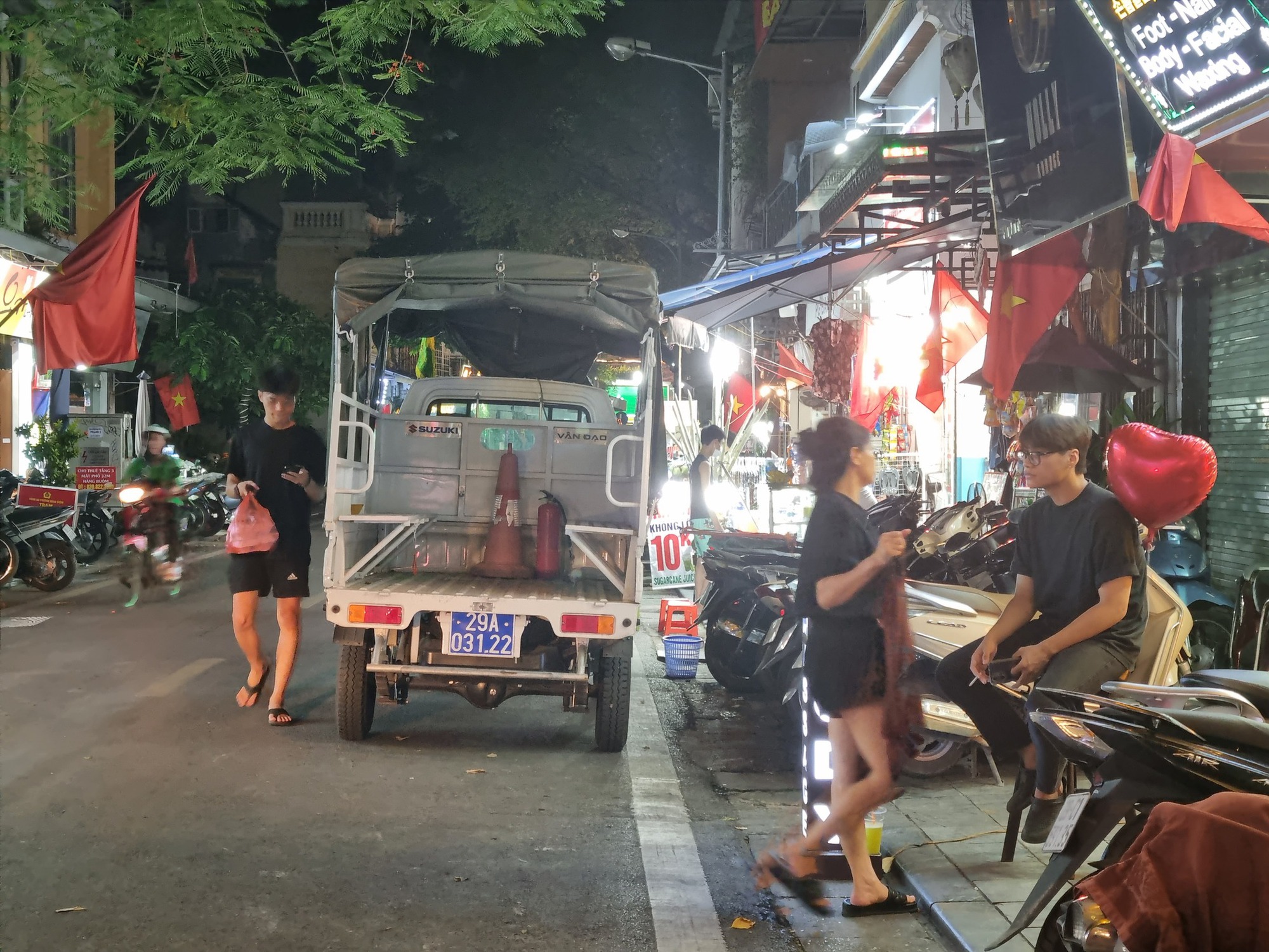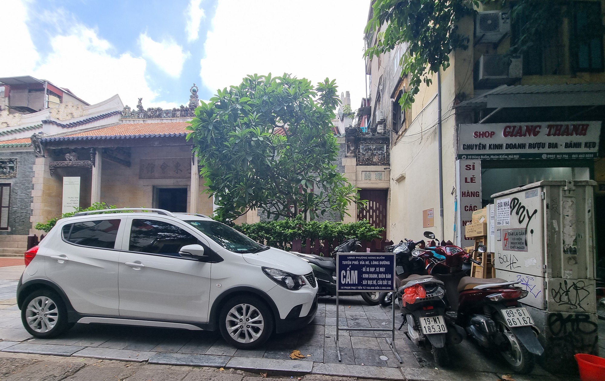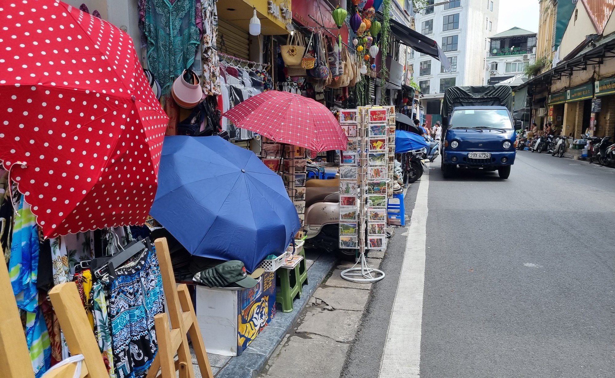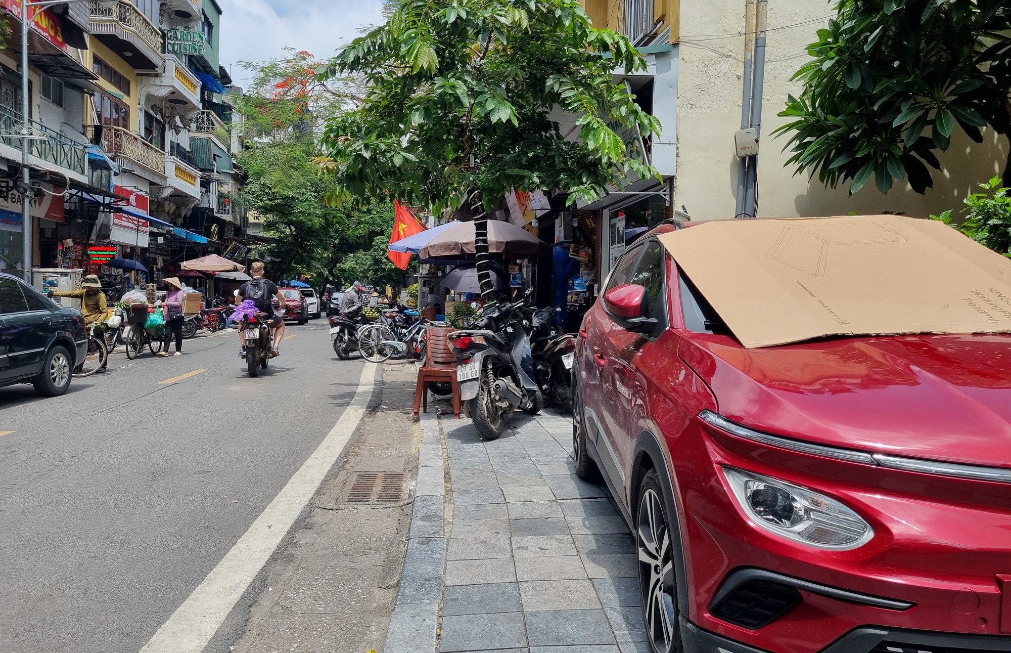 Vào ban ngày, nhiều tuyến phố trong phường Hàng Buồm vẫn khó có thể tìm thấy vỉa hè dành cho người đi bộ.