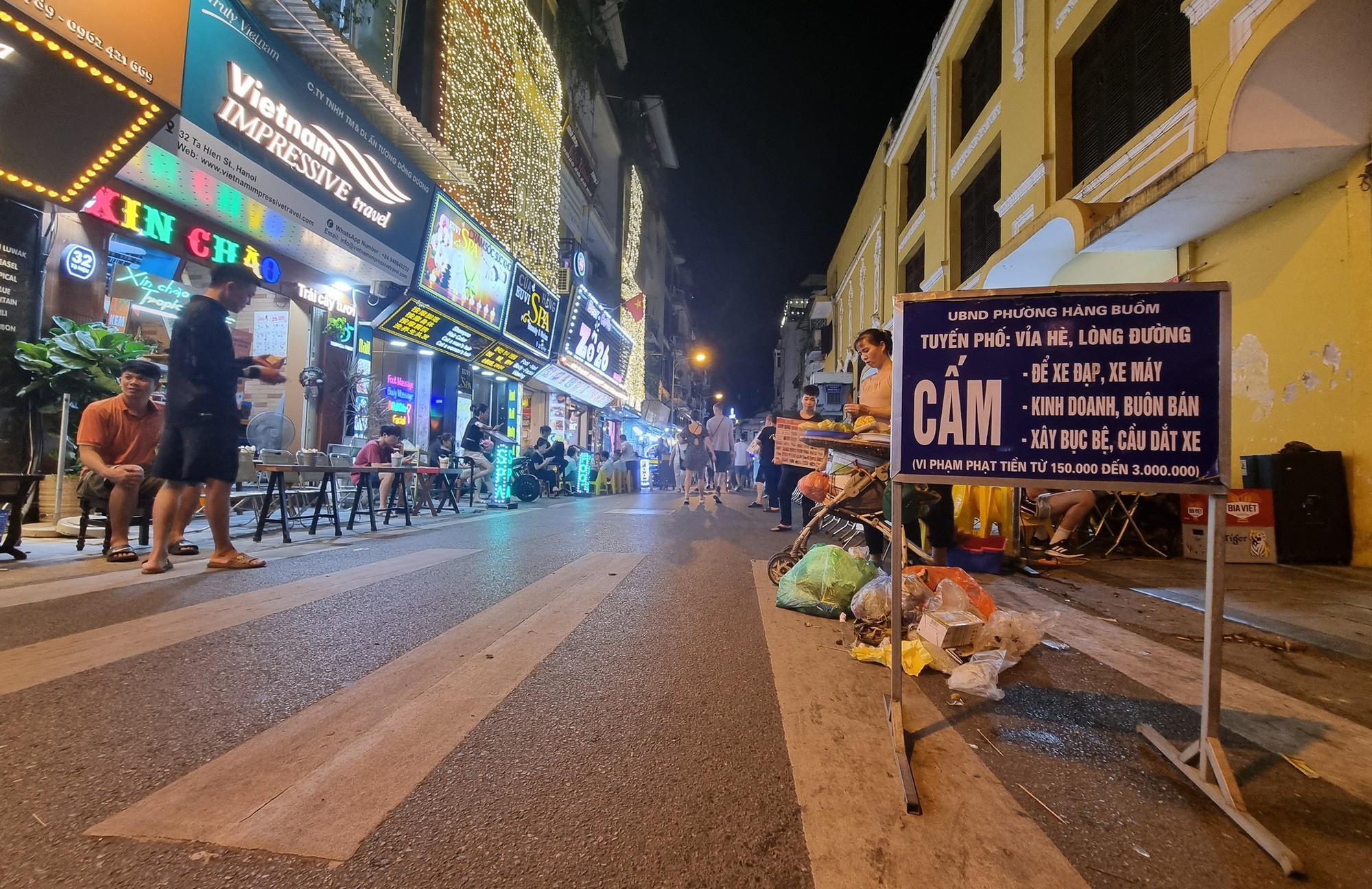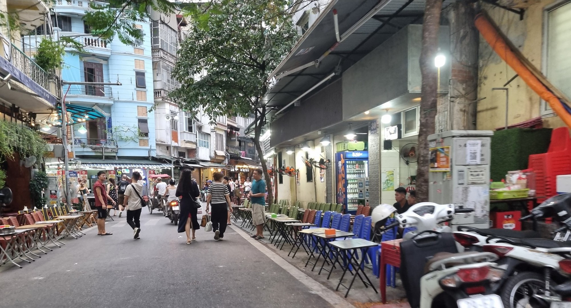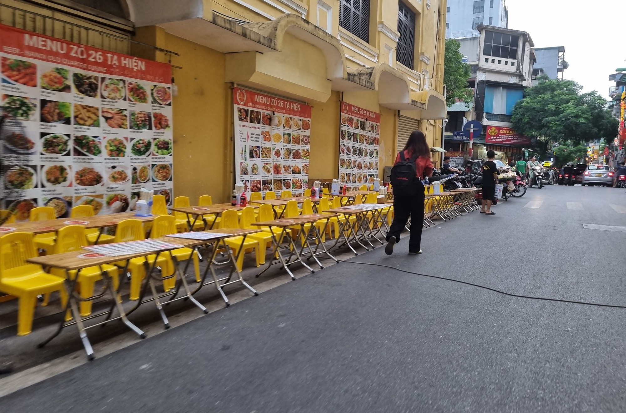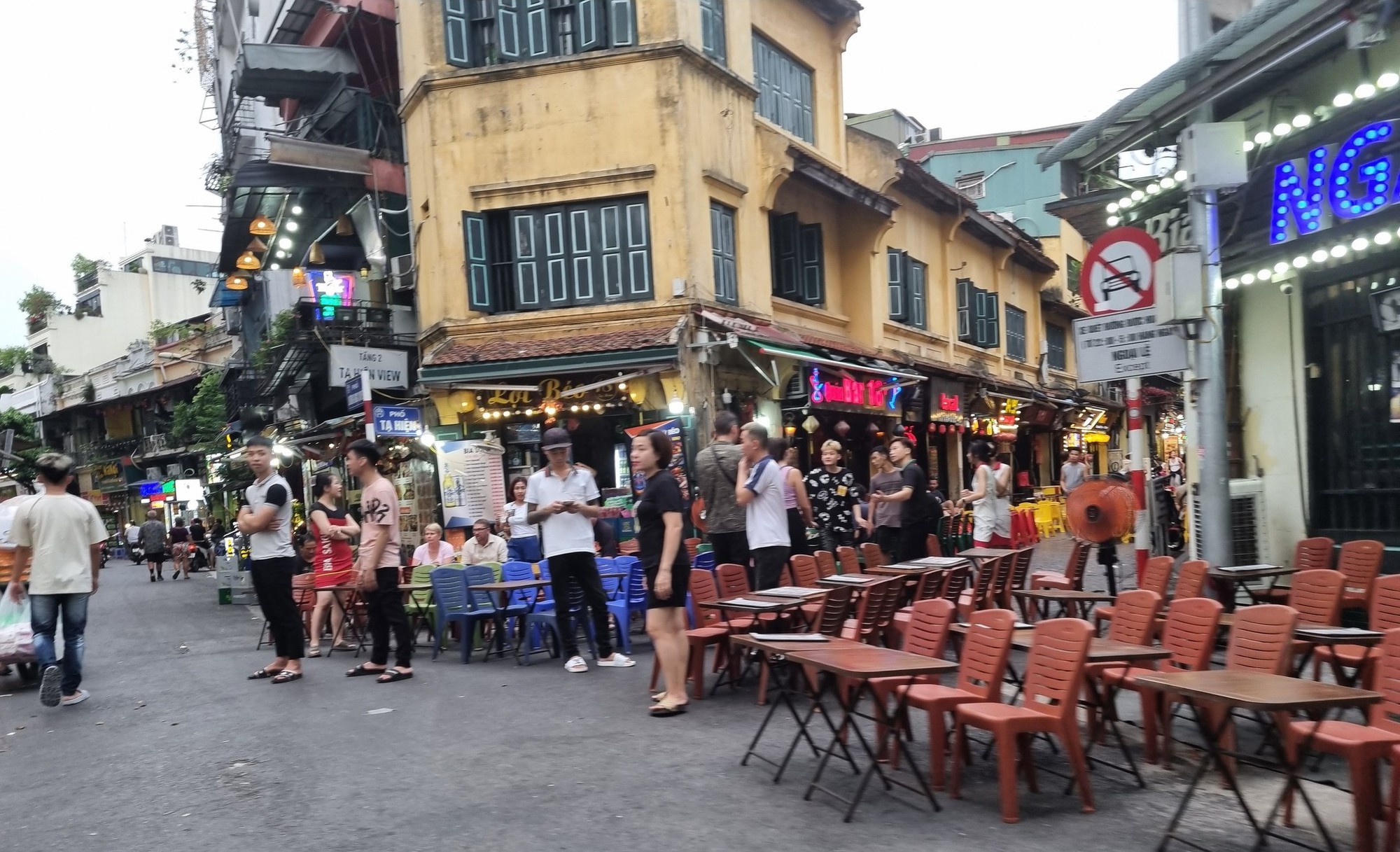 Cá biệt là tại phố Tạ Hiện đoạn từ ngã tư Lương Ngọc Quyến đến phố Hàng Buồm, các hộ kinh doanh tại đây thản nhiên chiếm gần hết lòng đường để kê bàn ghế phục vụ kinh doanh, chỉ chừa lại chưa đến 1m để cho người đi bộ, xe máy gần như không thể chen vào.
