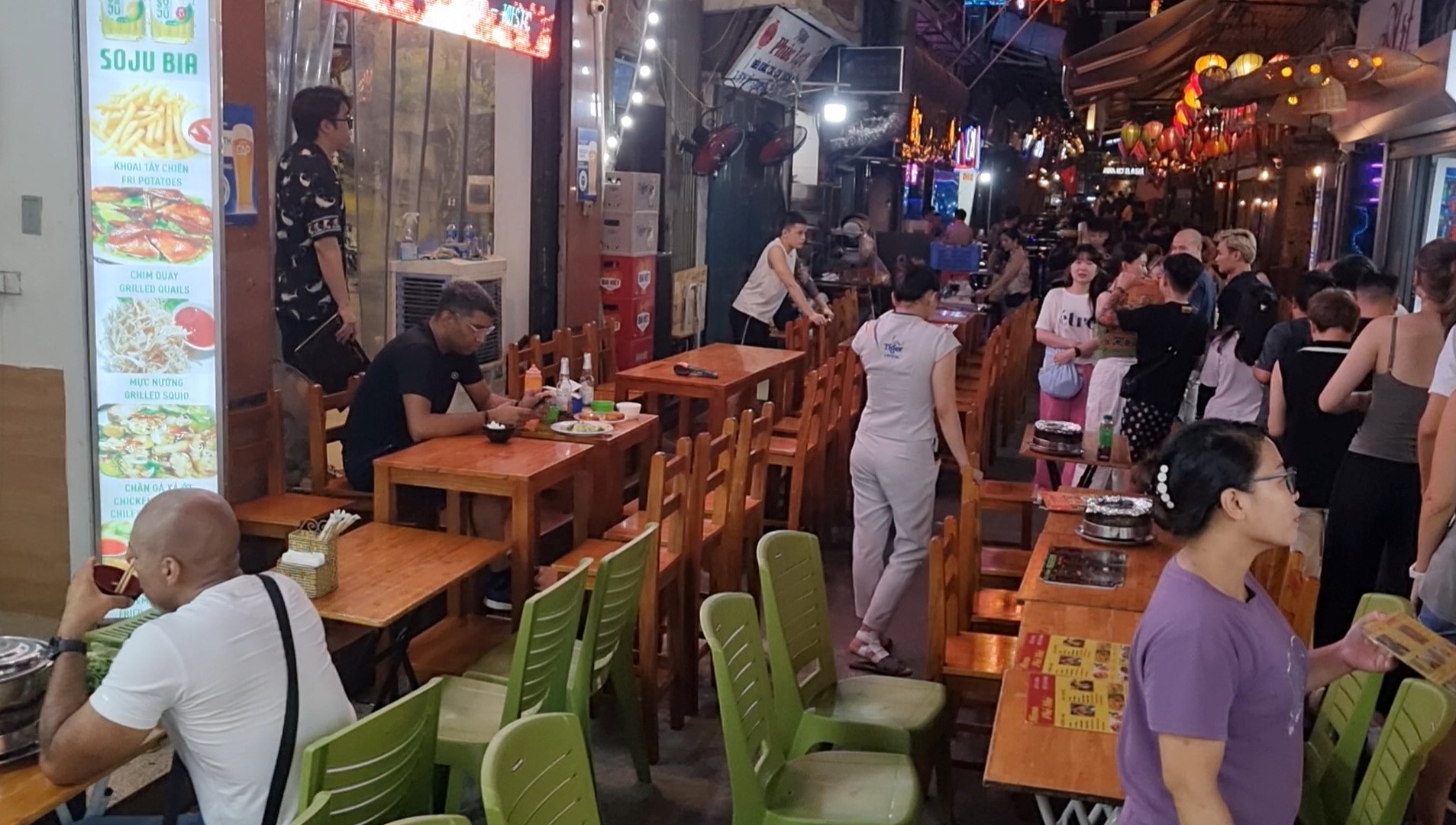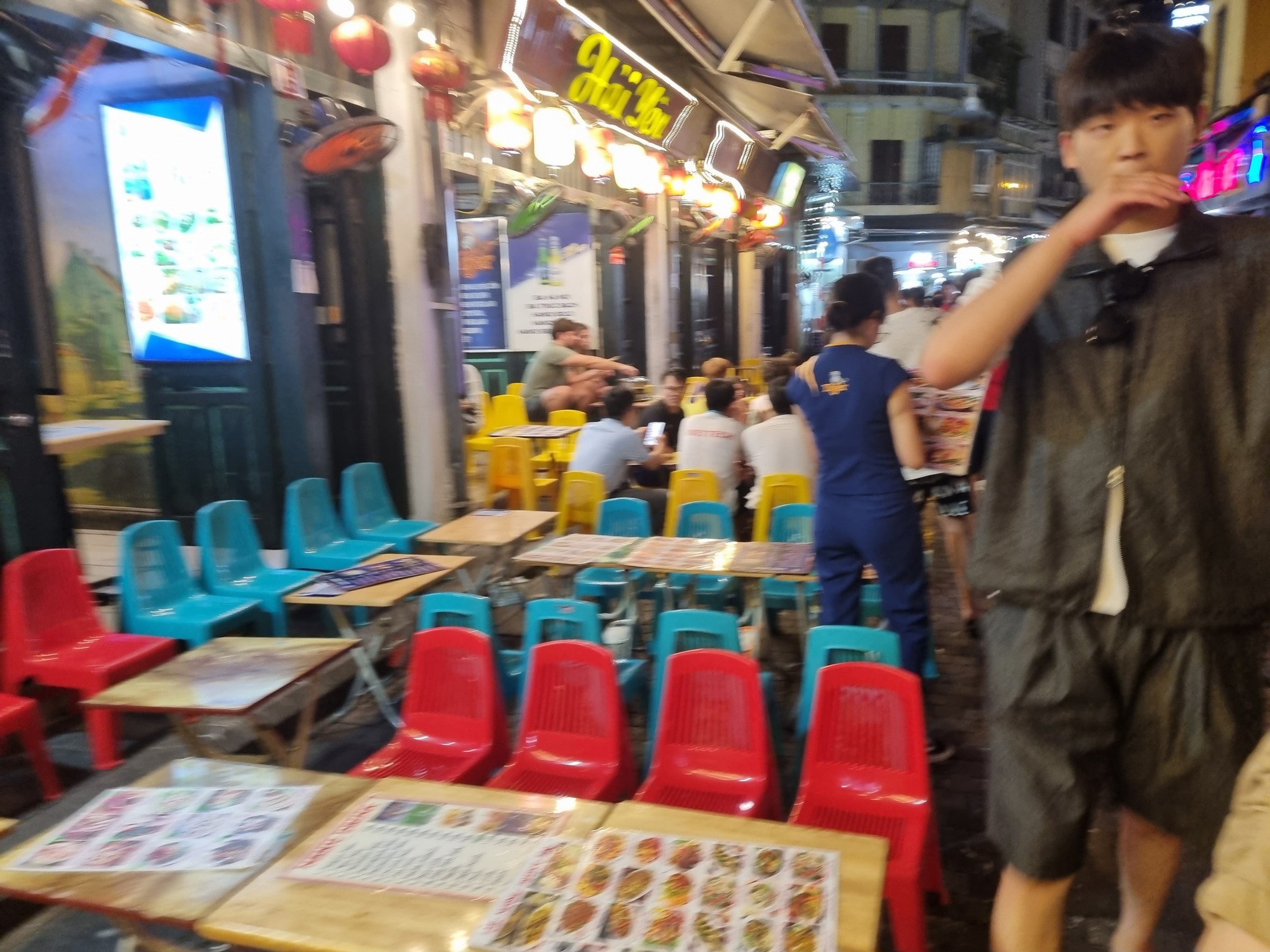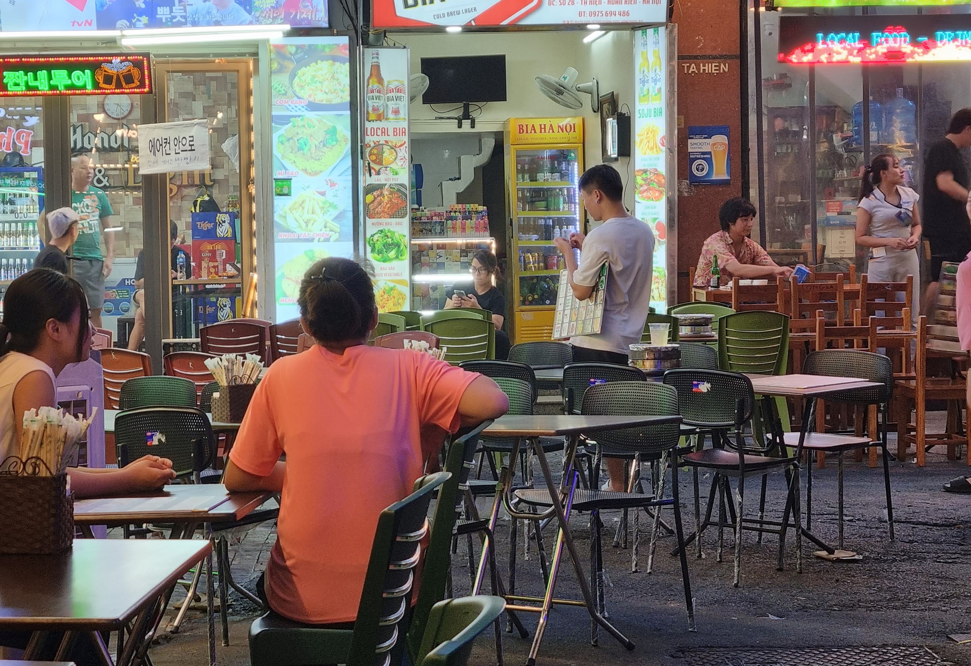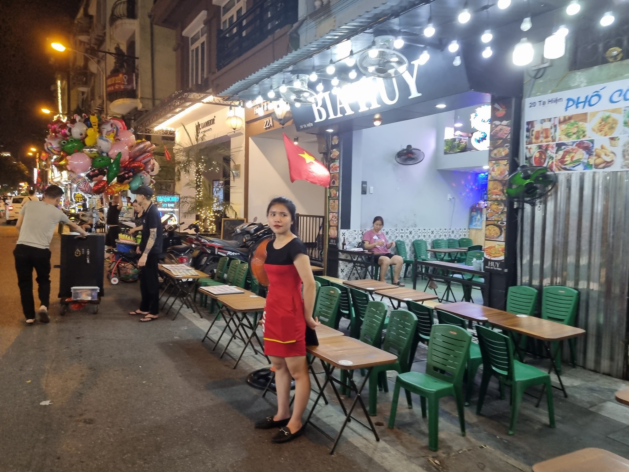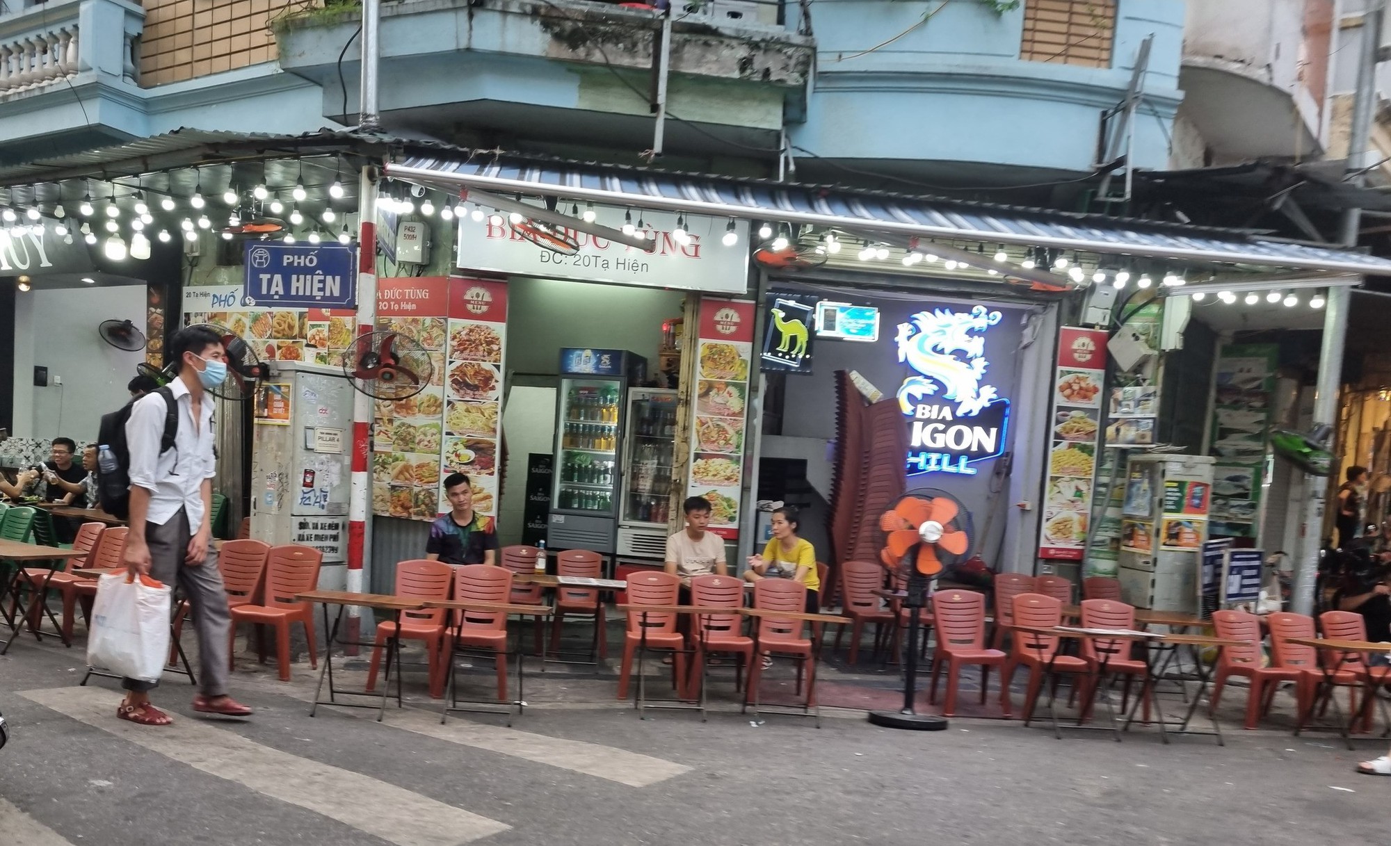 Cá biệt là tại phố Tạ Hiện đoạn từ ngã tư Lương Ngọc Quyến đến phố Hàng Buồm, các hộ kinh doanh tại đây thản nhiên chiếm gần hết lòng đường để kê bàn ghế phục vụ kinh doanh, chỉ chừa lại chưa đến 1m để cho người đi bộ, xe máy gần như không thể chen vào.