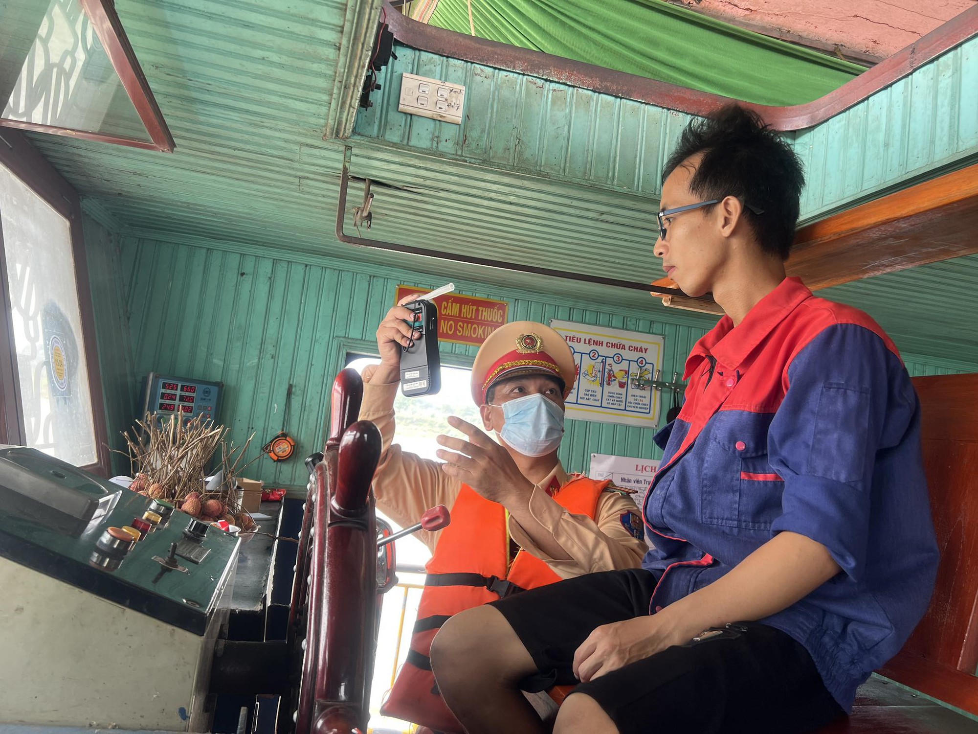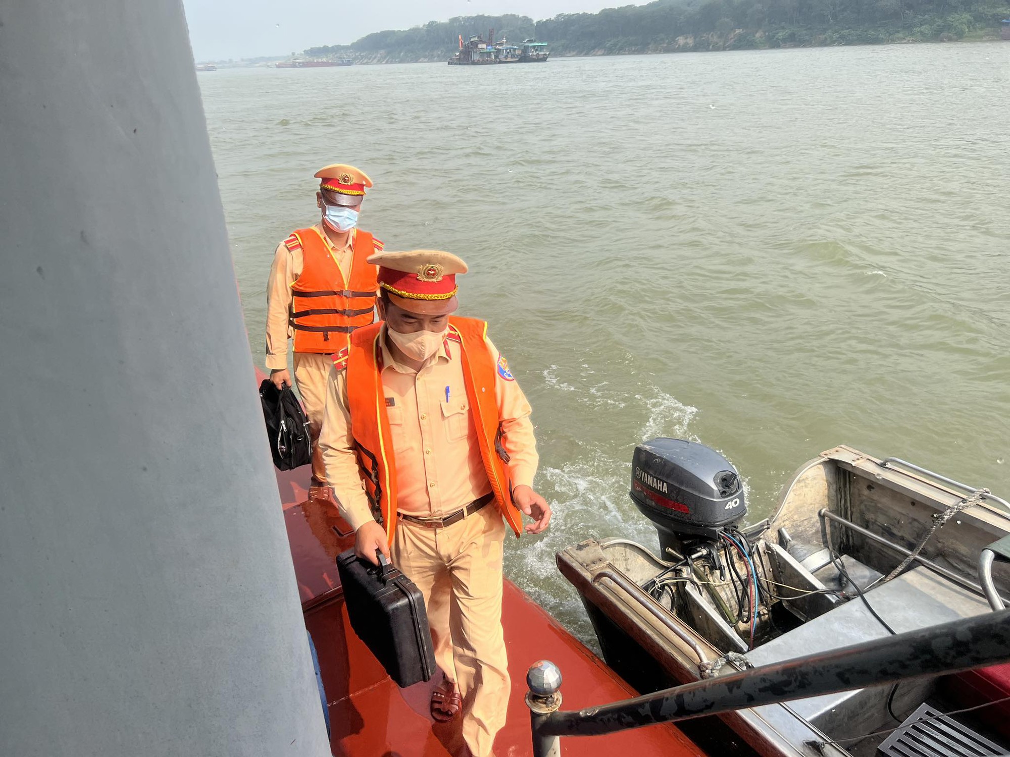 Một số hình ảnh tổ công tác Đội CSGT đường thuỷ số 1 (Hà Nội) tuyên truyền, kiểm tra lái tàu trên tuyến sông Hồng