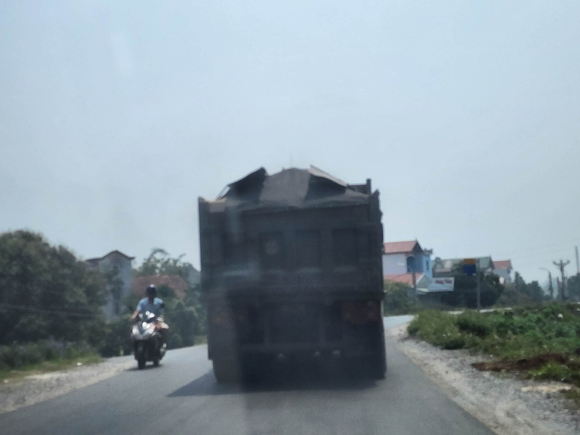 Hình ảnh xe tải "hổ vồ" né chốt xử lý của CSGT lưu thông từ Tỉnh lộ 417 huyện Đan Phượng qua QL32 lên đê thuộc địa bàn xã Song Phượng.