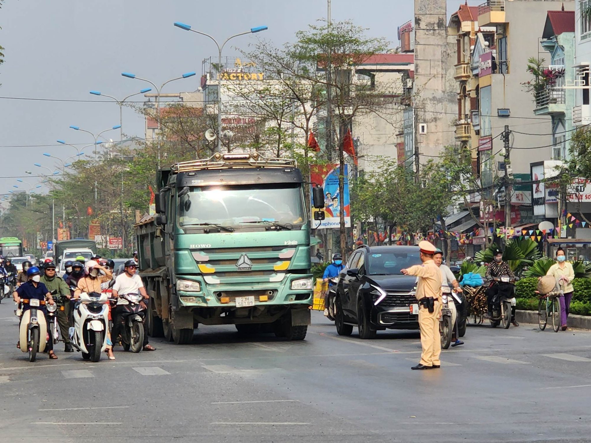 Vào thời điểm trên, tổ công tác gồm: Thiếu tá Mai Xuân Tứ, Đại uý Đỗ Hữu Giáp, Đại uý Đỗ Trường Giang, Đại uý Phạm Văn Chiến và Đại uý Phạm Nhật Dương thuộc Đội CSGT đường bộ số 9, do Thiếu tá Vũ Quang Tú, Đội trưởng trực tiếp chỉ huy phối hợp với tổ công tác Đội CSGT trật tự Công an huyện Phúc Thọ (Hà Nội) kiểm tra đối với những xe tải lưu thông trên địa bàn.