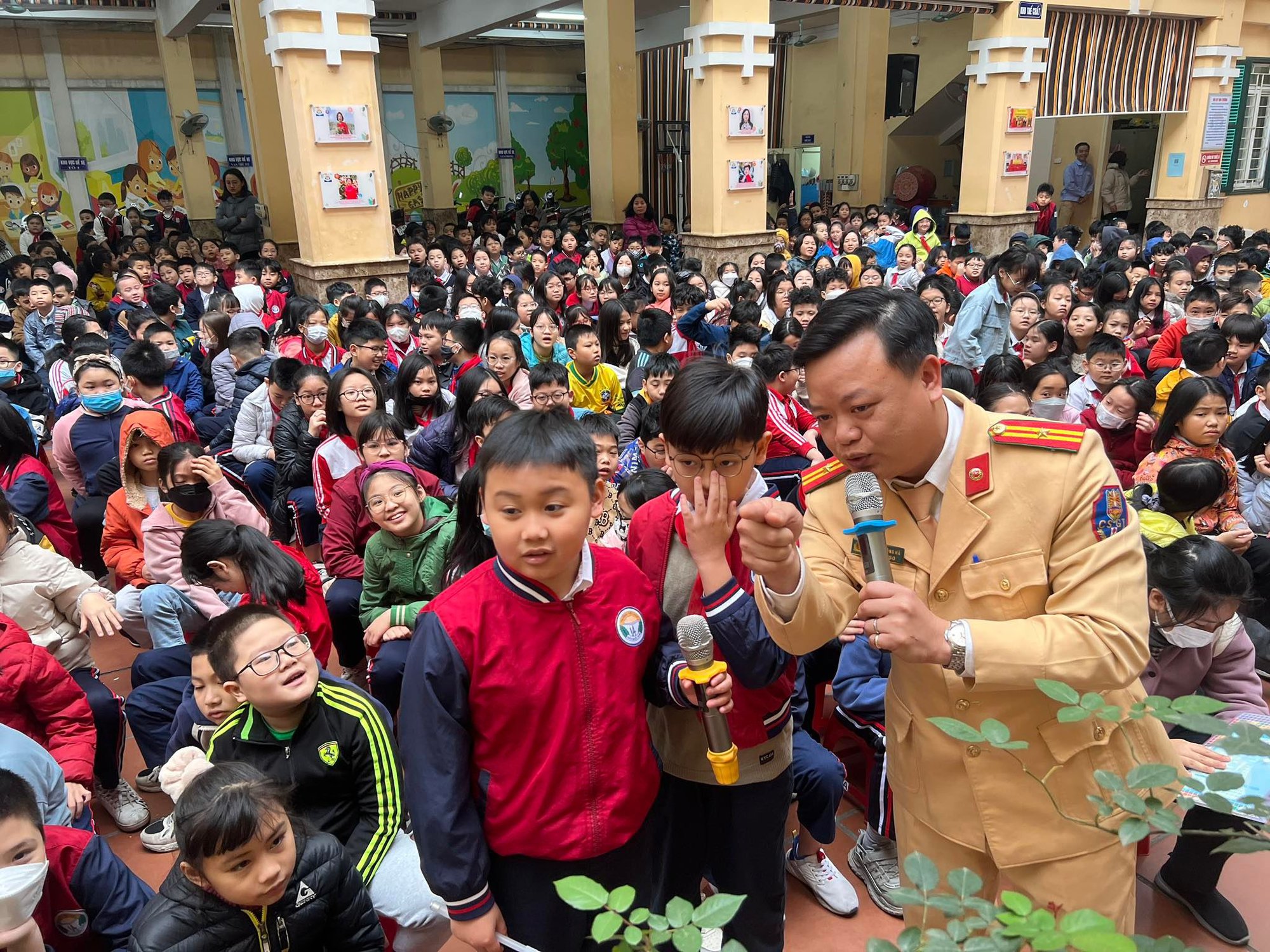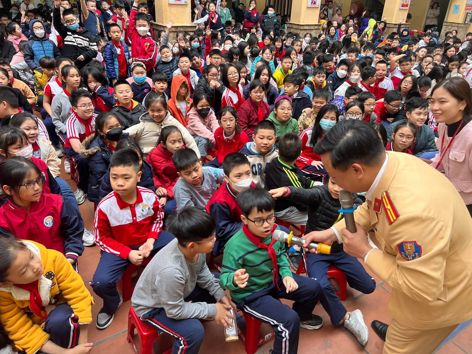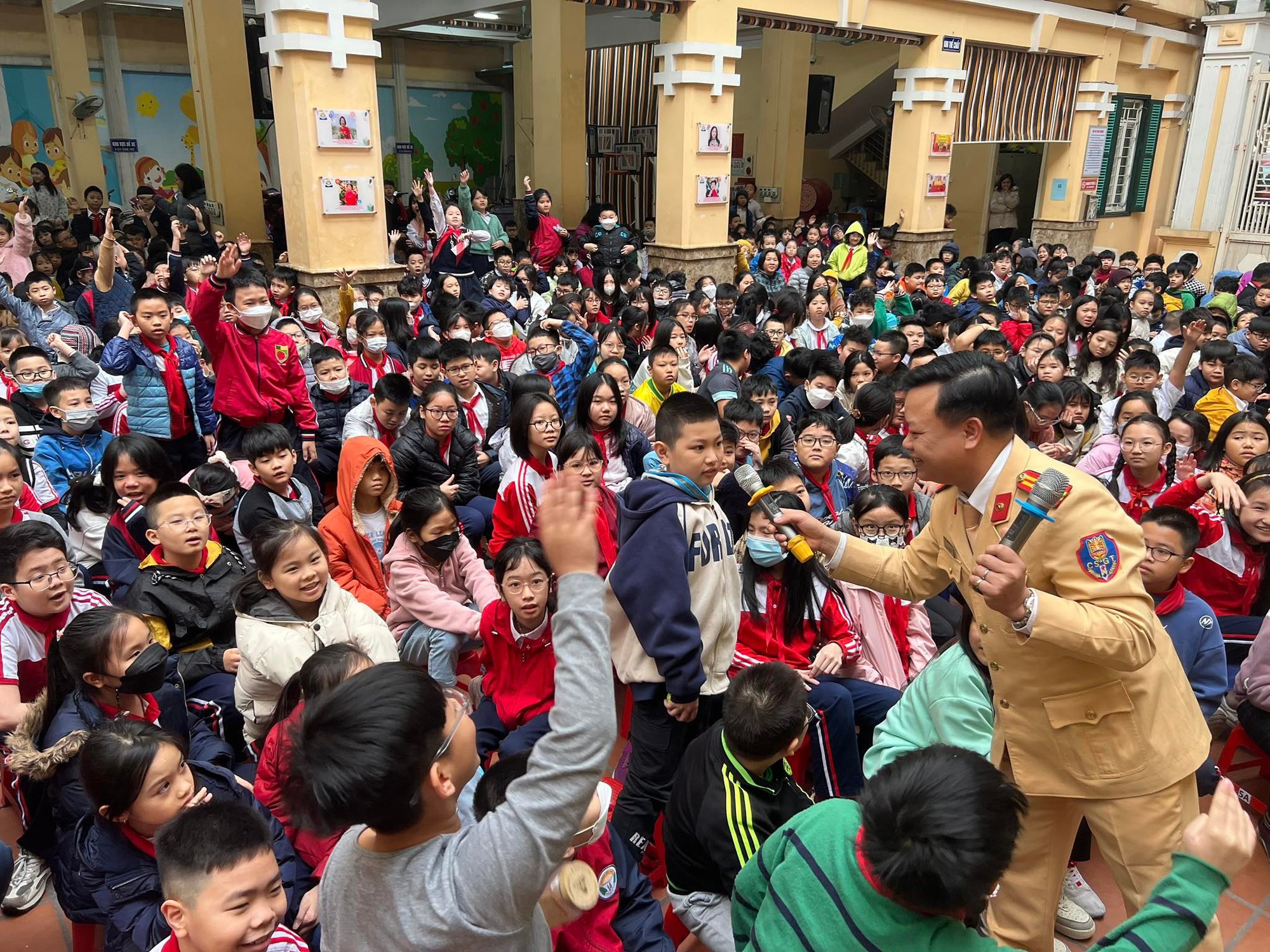 Một số hình ảnh Đội CSGT đường bộ số 1 tuyên truyền ATGT tại trường tiểu học Trần Quốc Toản trên địa bàn quận Hoàn Kiếm, Hà Nội.