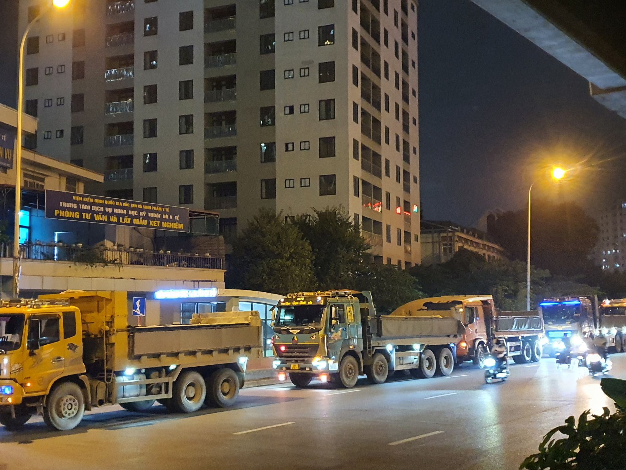 Trước đó, đêm 20/9, theo ghi nhận của PV, từng đoàn xe tải Howo, xe đầu kéo cũng xếp hàng dài vài trăm mét, từ gần khu vực cầu Dậu dọc đường Nguyễn Xiển vào tận cổng dự án Trường Tiểu học - THCS - THPT Lý Nhân Tông rồi lưu thông ra đường Nguyễn Xiển đi các nơi mà không hề bị lực lượng chức năng kiểm tra, xử lý.