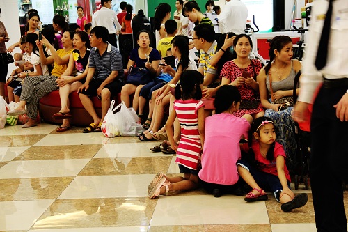 Tại trung tâm thương mại Royal 17h chiều khá đông người đến mua sắm, vui chơi làm cho không khí ở đây trở nên nhộn nhịp.