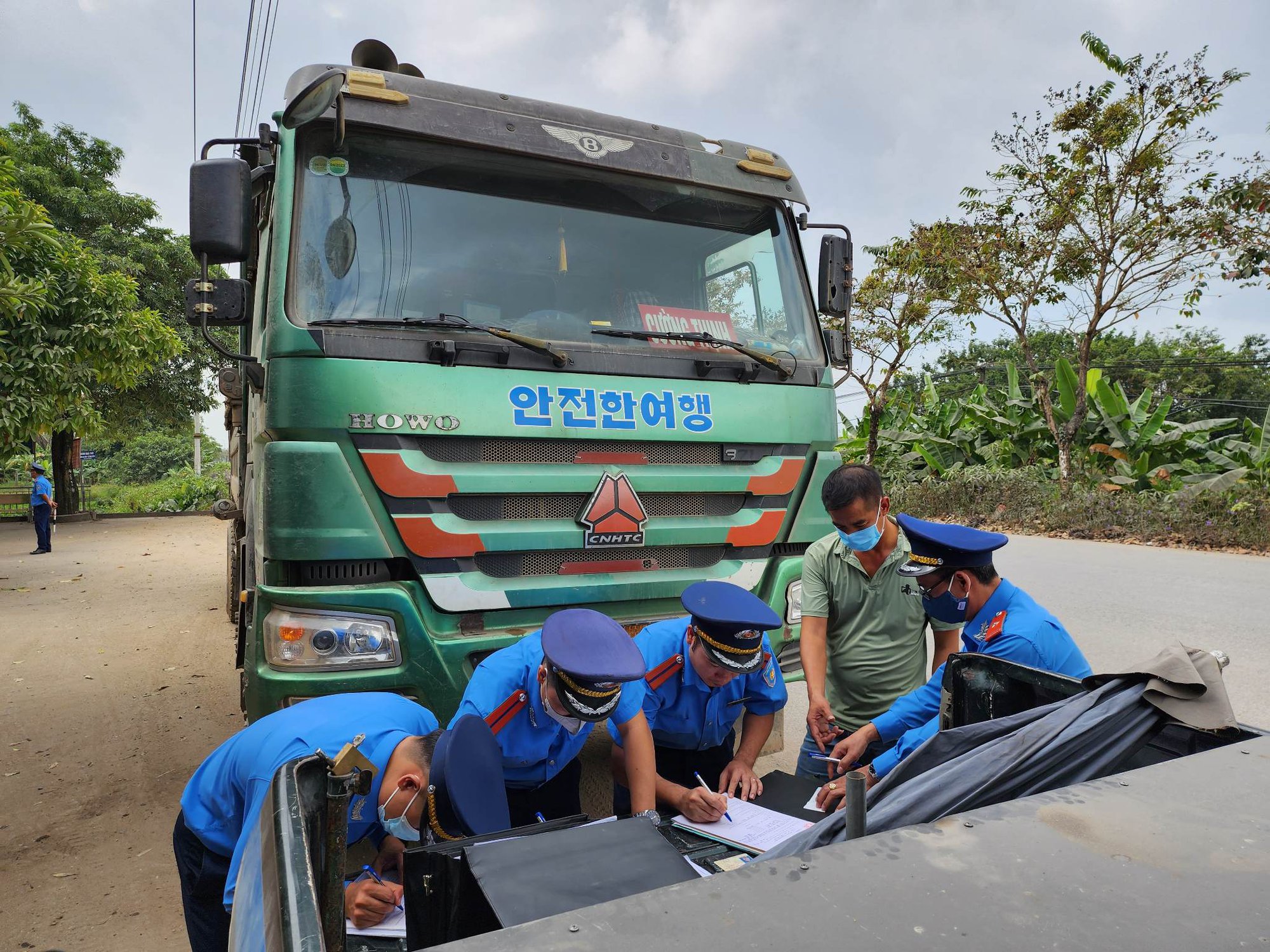 Theo đó, tổ công tác liên ngành tiến hành cân kiểm tra tải trọng, kết quả xe tải 29C-589.xx không quá tải nhưng chở vật liệu công trình lôi kéo ra đường. Tổ công tác tiến hành lập biên bản với hành vi vi phạm "Lôi kéo đất ra đường bộ gây mất an toàn giao thông và bảo vệ sinh môi trường".