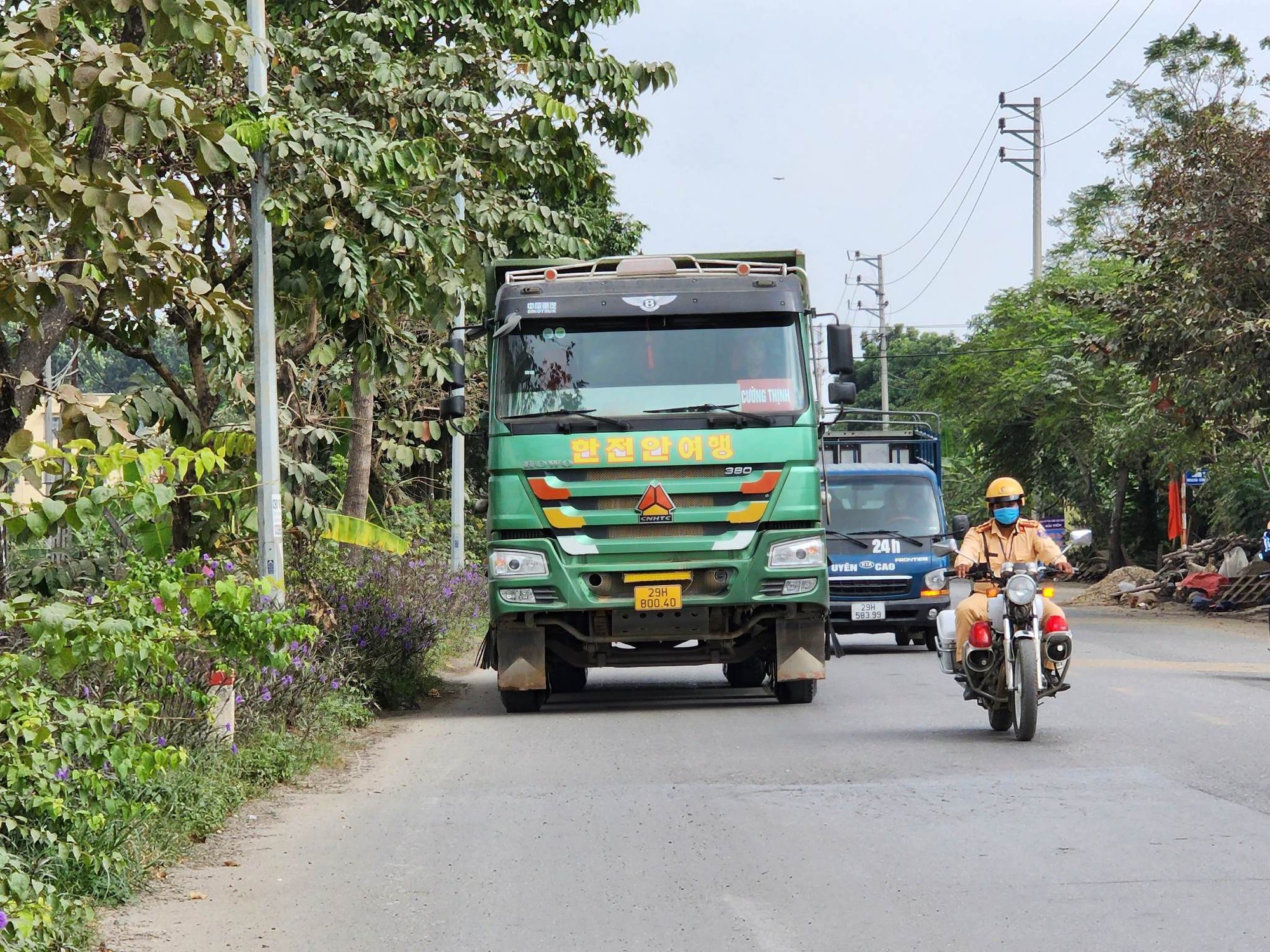 Chỉ ít phút sau, CSGT dòng một xe hổ vồ BKS 29H-800.xx cũng gắn biển tên Cường Thịnh lưu thông từ hướng đê Ngọc Tảo ra Tỉnh lộ 418. Khi CSGT yêu cầu lái xe tải hổ vồ 29H-800.xx về vị trí cân để kiểm tra cân tải trọng, lái xe trần trừ rồi rút điện thoại gọi "cứu viện" nhưng không được.