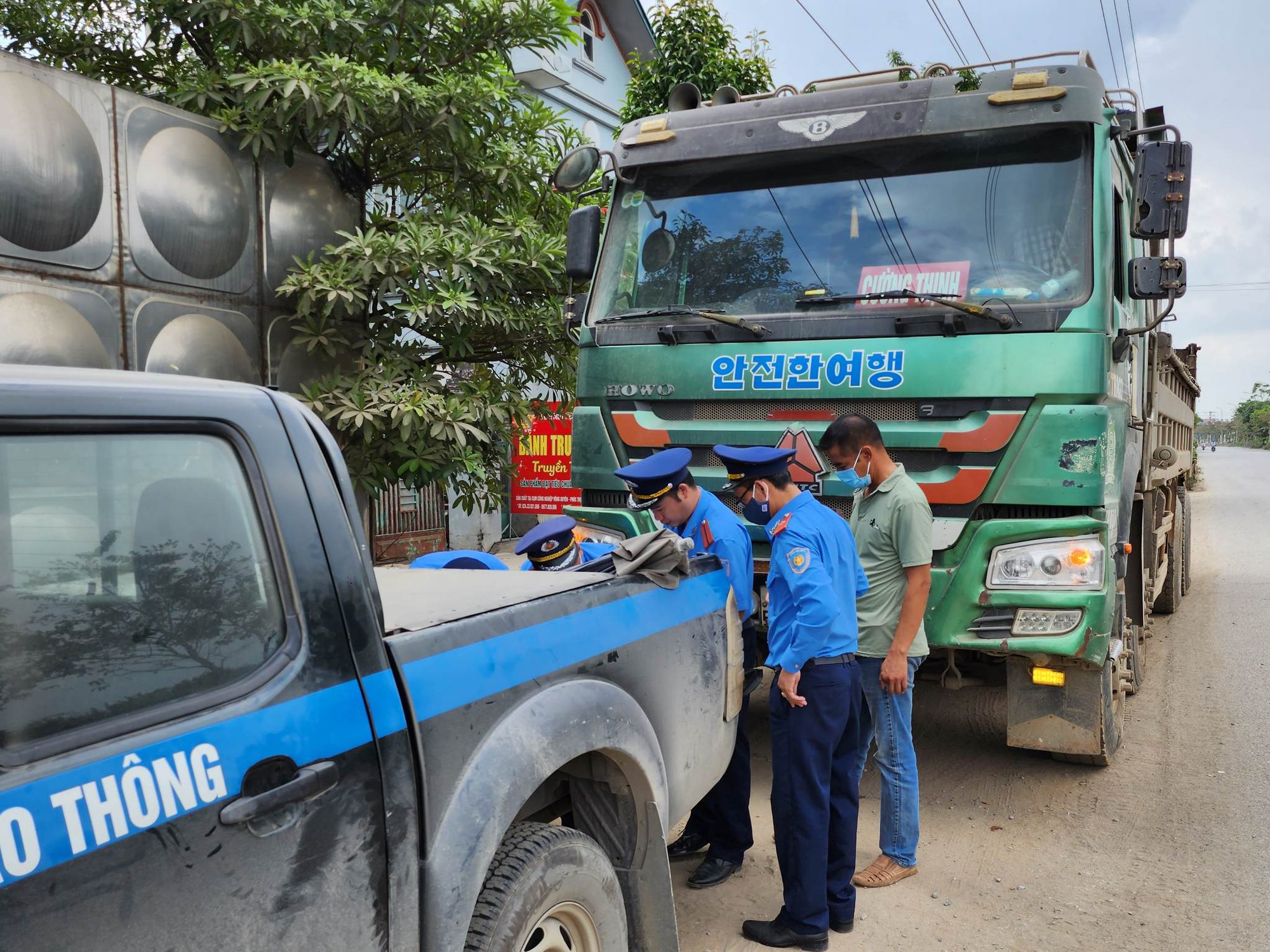 Đến khoảng 10h sáng cùng ngày (18/11), tổ công tác phát hiện một xe ô tô hổ vồ trưng biển tên Cường Thịnh mang BKS 29C-589.xx lưu thông từ Cụm Công an nghiệp xã Võng Xuyên ra. Ngay lập tức, tổ công tác áp sát, dừng xe kiểm tra. Ngay sau khi tổ công tác dừng xe tải hổ vồ 29C-589.xx, tổ công tác liên ngành yêu cầu kiểm tra và thông báo cân kiểm tra tải trọng. Lái xe lẳng lặng đi ra phía ngoài gọi "cứu viện" không được đã quay lại xuất trình GPLX mang tên Nguyễn Bắc K. (SN 1978, ở huyện Phúc Thọ, Hà Nội).