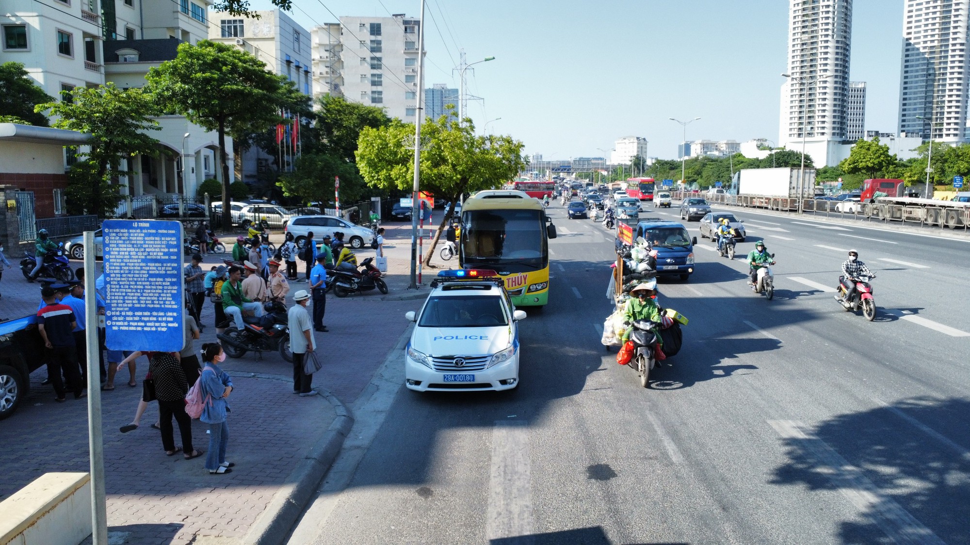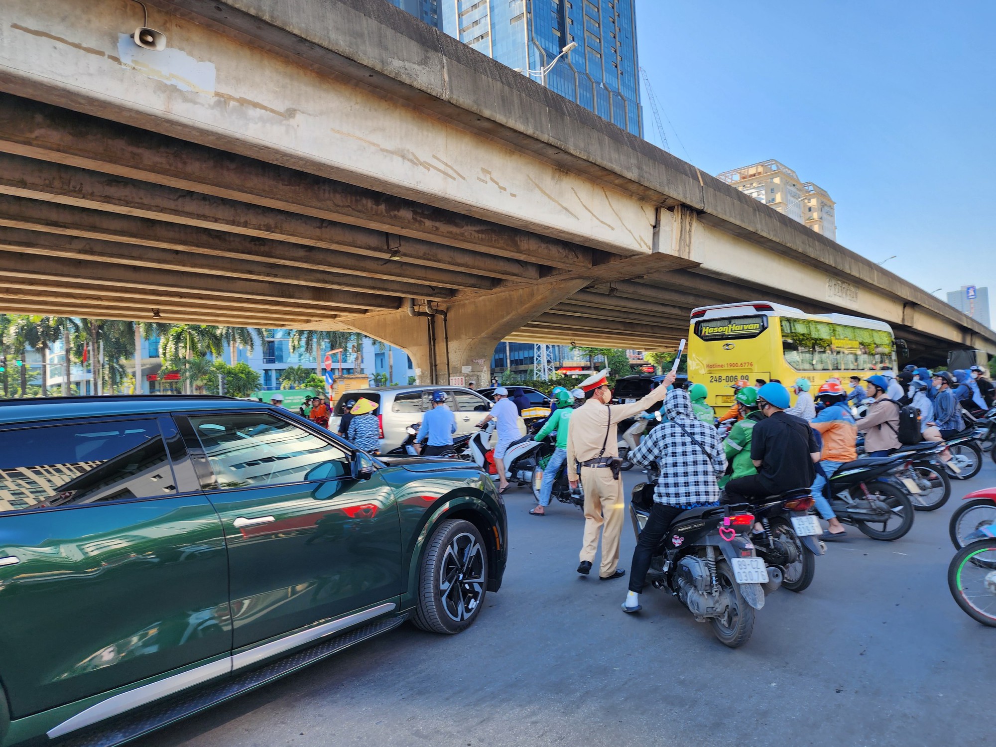 Cũng theo Thiếu tá Nguyễn Minh Đức, trên các tuyến, trục xuyên tâm như tuyến đường Khuất Duy Tiến - Nguyễn Trãi - Tố Hữu - Lê Văn Lương…, đặc biệt đường dẫn lên tuyến đường vành đai 3 trên cao có lưu lượng phương tiện đông, đơn vị bố trí các tổ công tác hướng dẫn, phân luồng, kịp thời giải quyết các sự cố va chạm giao thông.