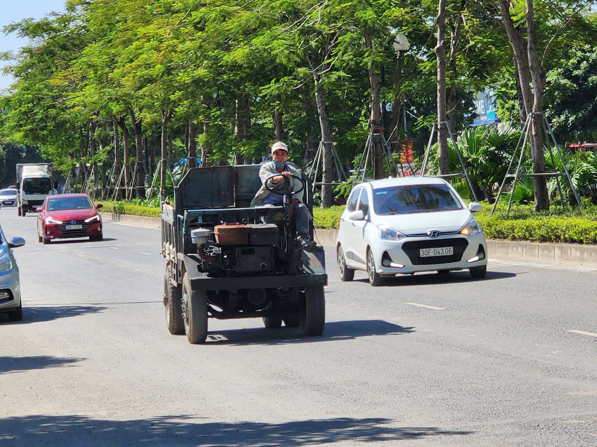 Theo ghi nhận, không chỉ có các xe "hổ vồ", xe đầu kéo, xe container chở vật liệu xây dựng chở nặng mà còn có các xe tải chở đất "có ngọn", không che phủ bạt hoặc che phủ bạt sơ sài để "lộ thiên", xe tự chế, công nông đầu ngang (loại phương tiện Chính phủ đã cấm) hoạt động trên địa bàn huyện Quốc Oai.