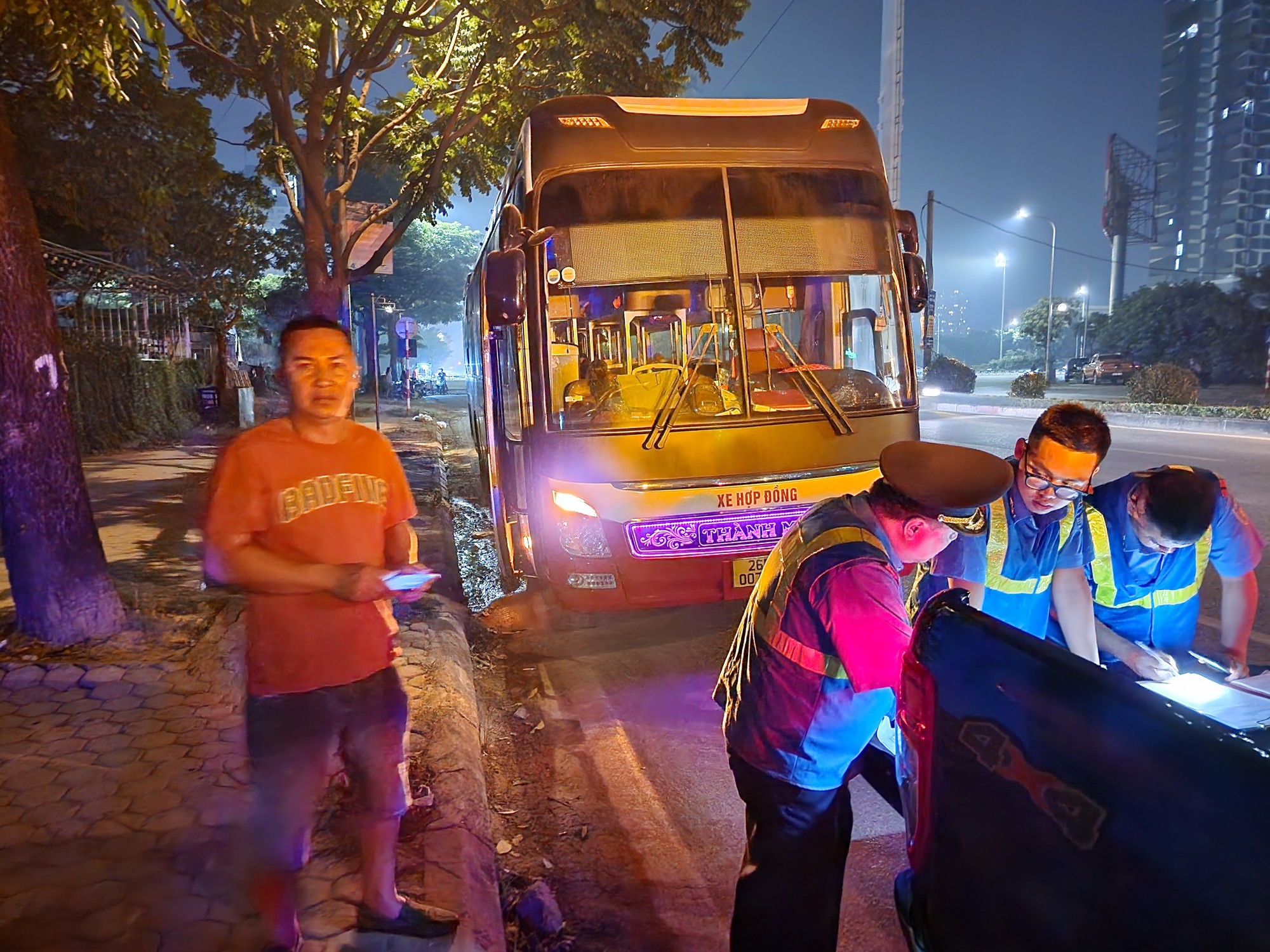 Trước đó, ghi nhận của PV Tạp chí Giao thông Vận tải đêm 13/10 trên đường Châu Văn Liêm thuộc địa bàn quận Nam Từ Liêm (Hà Nội), tổ công tác liên ngành Thanh tra Sở GTVT, CSGT Công an TP. Hà Nội do ông Trần Hoài Linh, Đội phó Đội TTGT đường bộ (Thanh tra Sở GTVT Hà Nội) tiến hành tuần tra kiểm soát trên đường, kiểm tra ô tô khách hợp đồng BKS 26B-007.65 do tài xế Phạm Ngọc Thành (ở huyện Bắc Yên, tỉnh Sơn La) điều khiển và xe ô tô khách hợp đồng BKS 29B-038.40 do tài xế Phan Duy Hung (ở xã Sài Sơn, huyện Quốc Oai, Hà Nội) điều khiển.