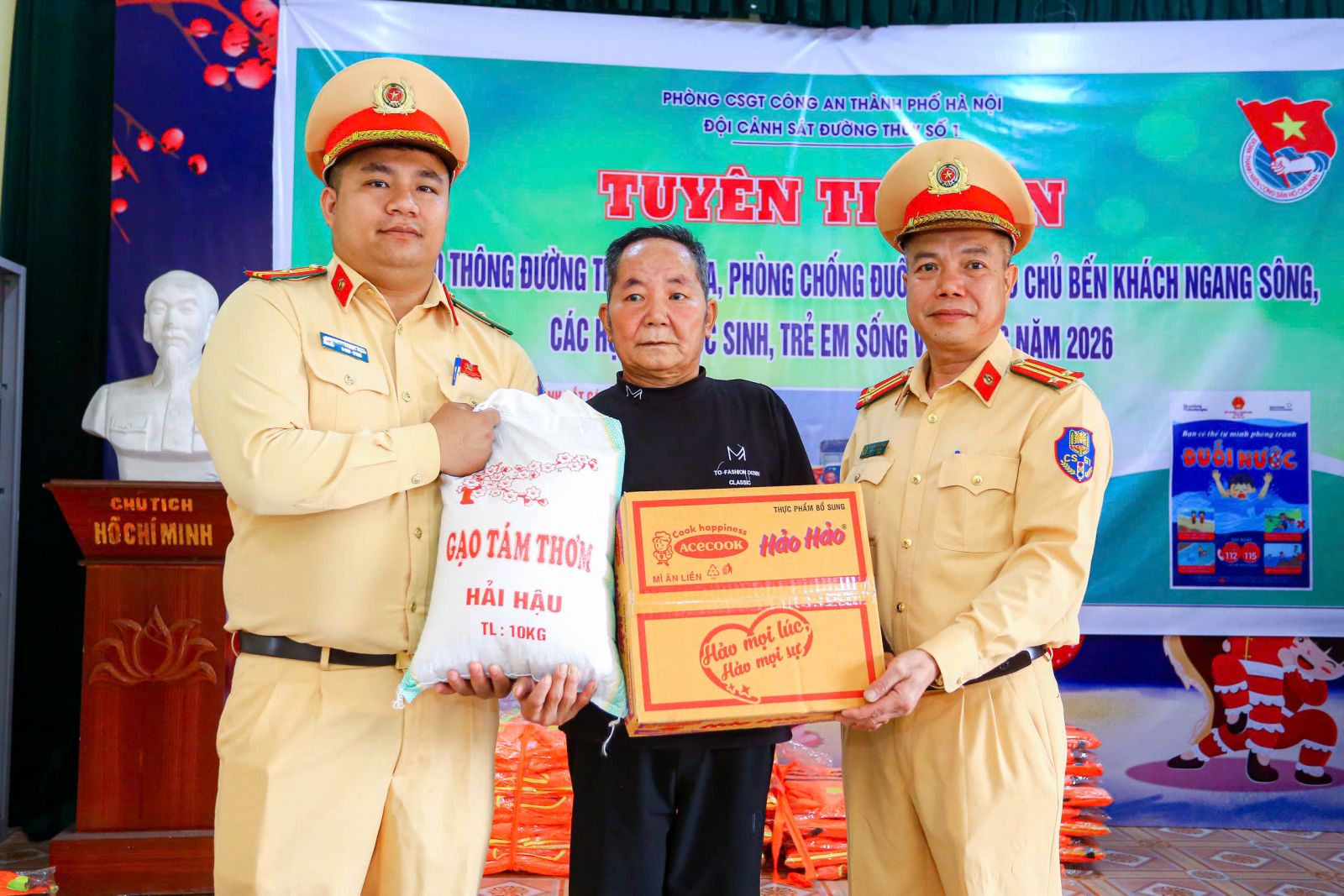 “Kết thúc buổi tuyên truyền đoàn thanh niên đội Cảnh sát đường thuỷ số 1 đã cùng người dân ký cam kết chấp hành Luật giao thông Đường thuỷ nội địa và nghiêm cấm người dân dánh bắt cá dùng kích điện gây hại môi trường…”, Trung tá Nguyễn Xuân Trung nói và thông tin thêm tại buổi tuyên truyền, CSGT đã phát tặng 200 áo phao cho các chủ bến đò, người dân, trẻ em học sinh và gạo, mì tôm cho người dân nghèo sống ven sông Hồng trên địa bàn.