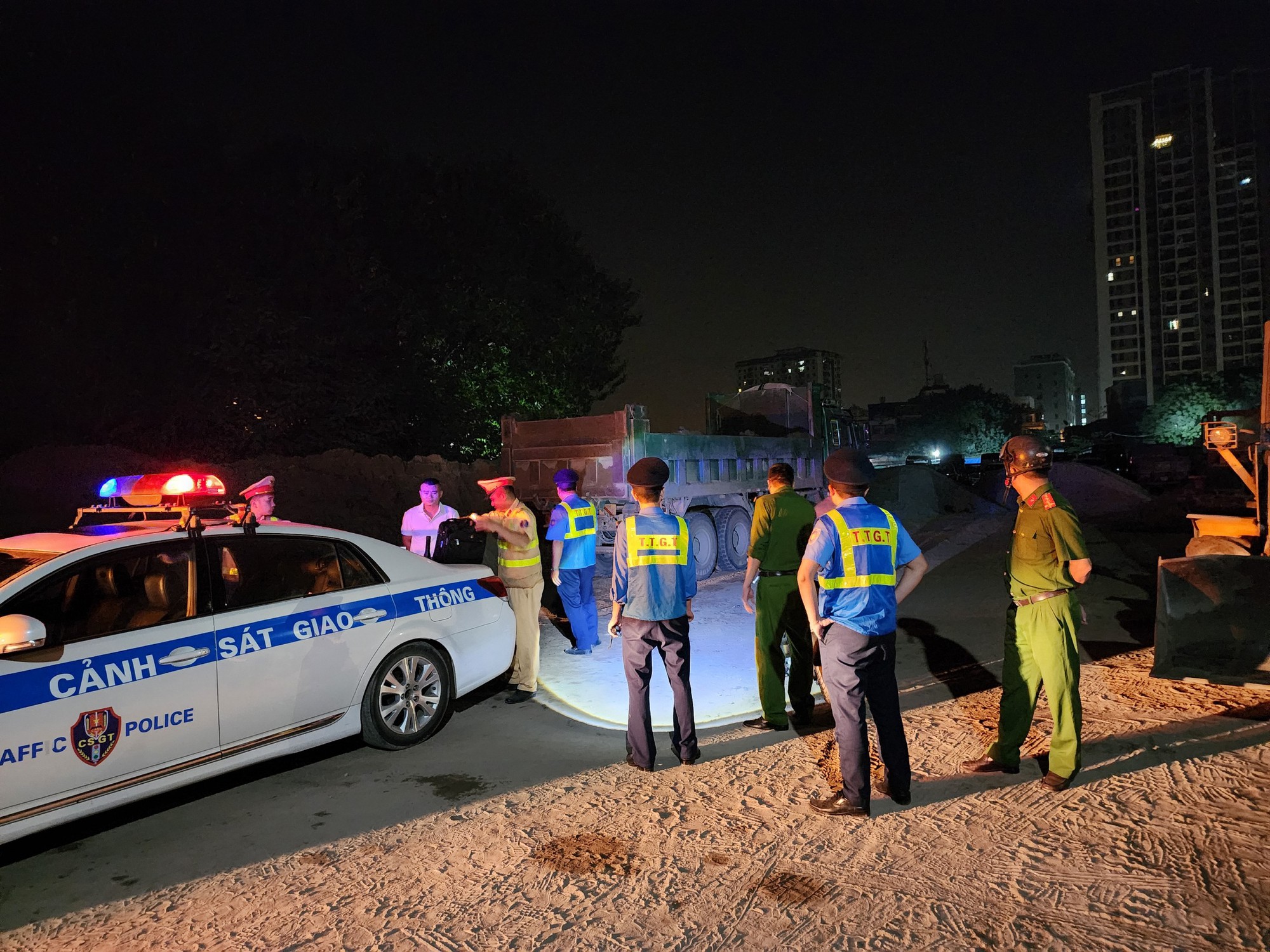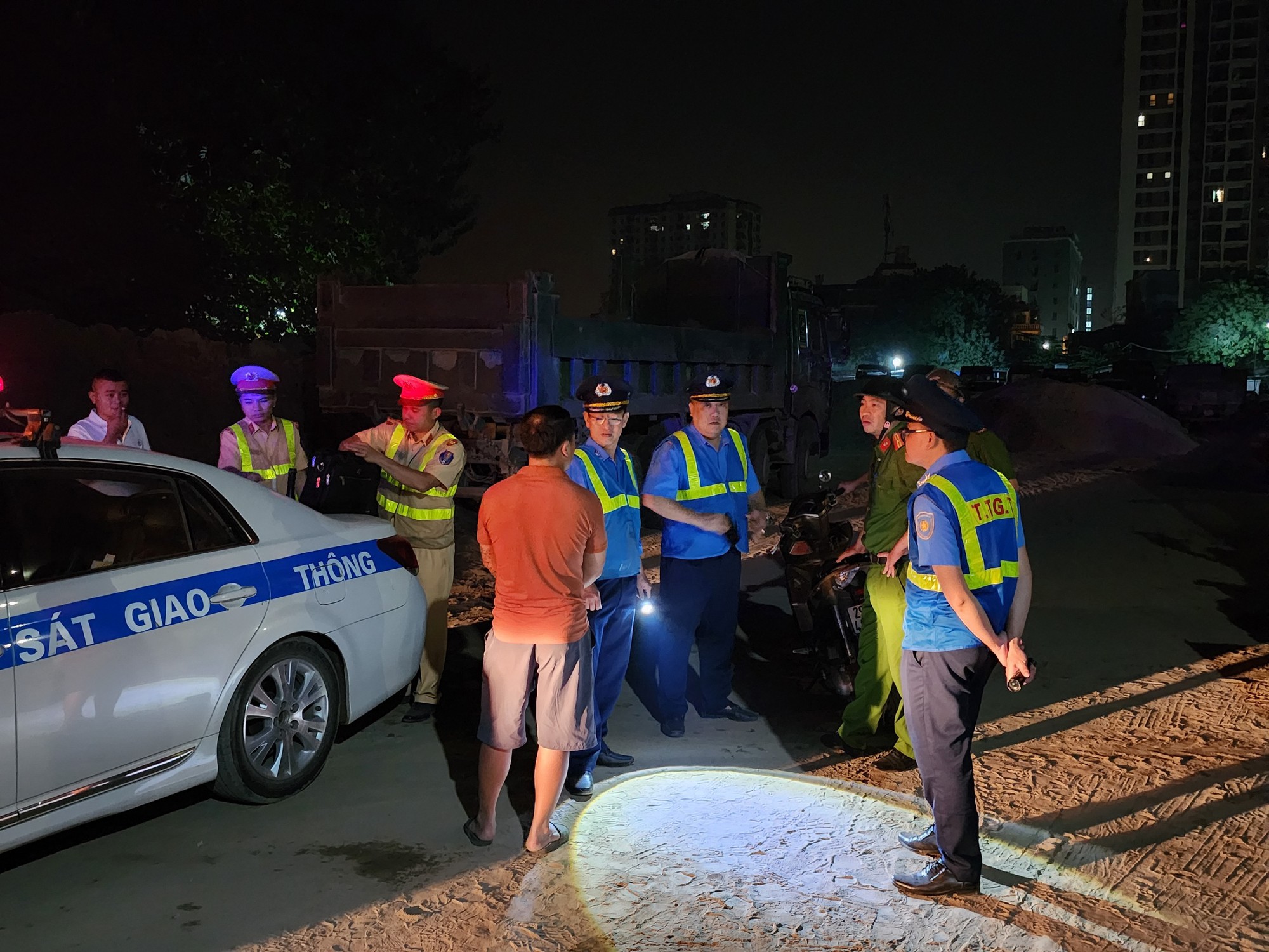 Biết có lực lượng bám theo, bỏ mặc việc cảnh sát gọi loa yêu cầu dừng lại, lái xe tải vẫn tiếp tục tăng ga bỏ chạy qua nhiều tuyến đường từ quận Nam Từ Liêm sang quận Hà Đông, về quận Hoàng Mai rồi chạy vào Cửa hàng vật liệu xây dựng 45 trên địa bàn phường Định Công. Rất nhanh, lái xe nâng ben trút cát xuống bãi rồi lái xe bỏ ra ngoài gọi điện thoại tìm "cứu viện". Ngay sau đó, xe của tổ liên ngành cũng đã kịp thời có mặt quay video lại toàn bộ vụ việc.