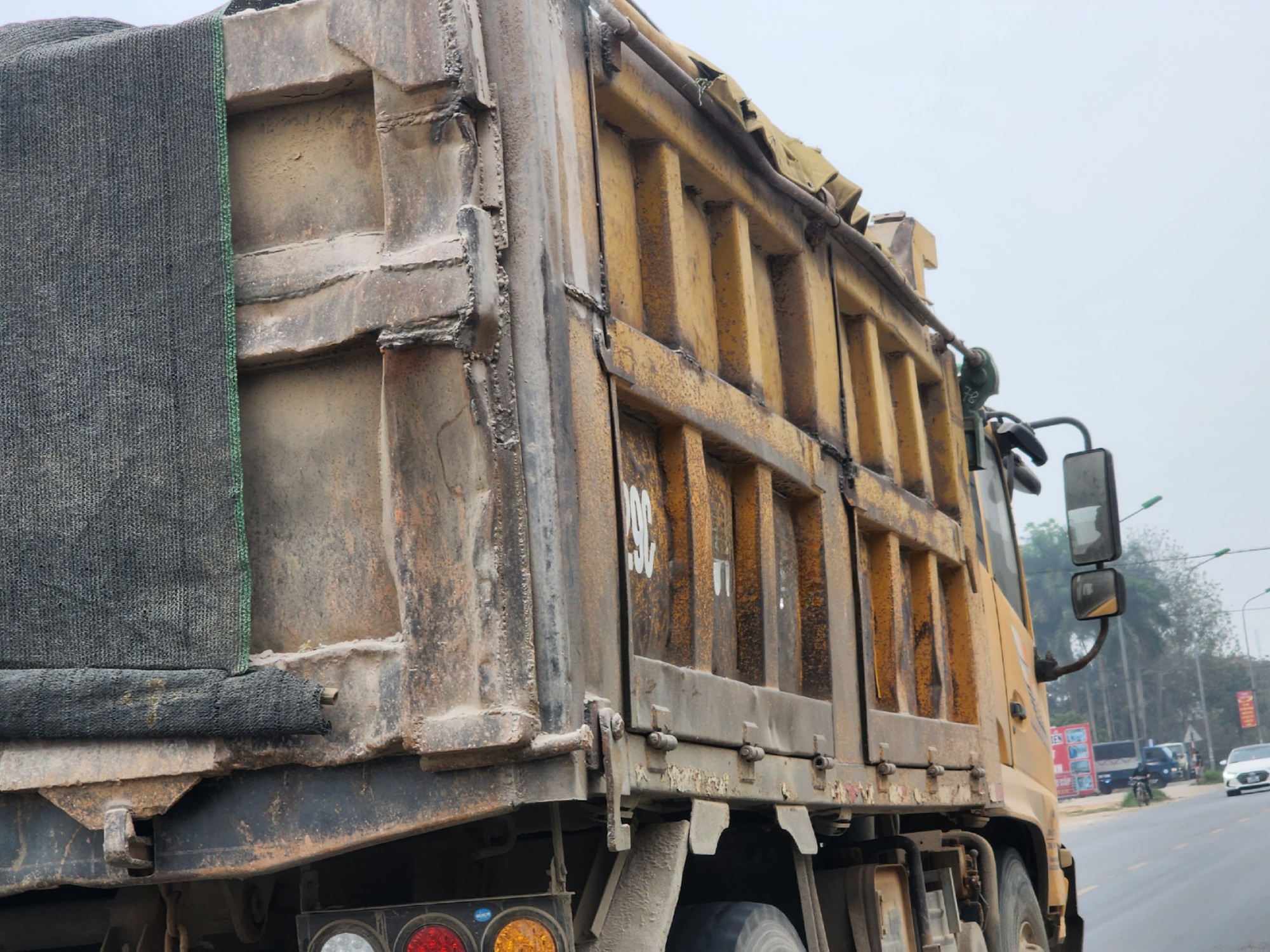 Một số hình ảnh xe tải có dấu hiệu chở quá tải trên địa bàn huyện Thanh Oai và đường Vũ Trọng Khánh, quận Hà Đông.