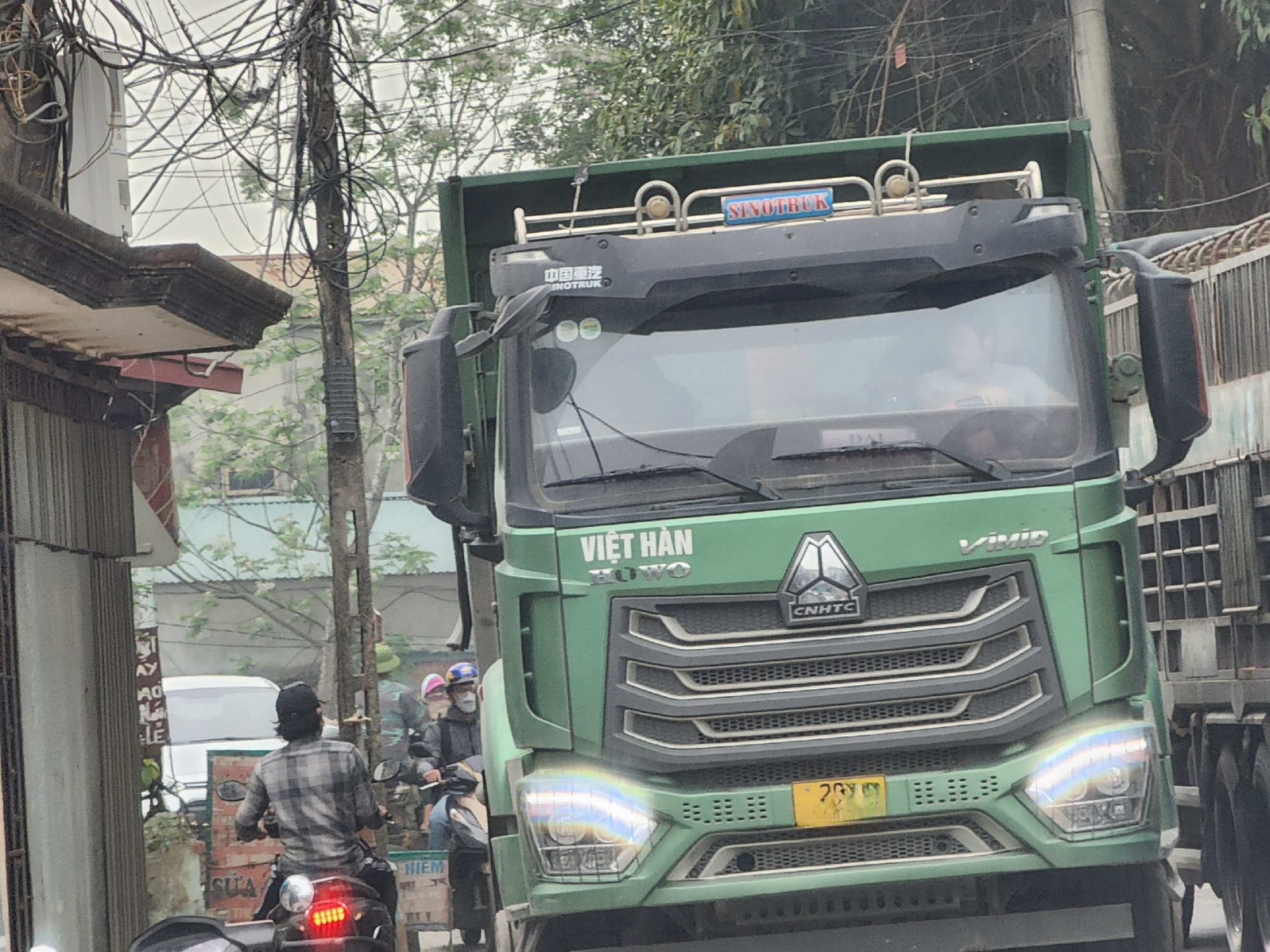 Không chỉ xe tải lưu thông trên tuyến quốc lộ, mà một số tuyến đường nội thị các xe tải "hổ vồ" chở vật liệu xây dựng có dấu hiệu cơi nới thành thùng, chở đầu có ngọn lưu thông trên địa bàn như xe tải 29C-800.xx, 29C-057.xx, 29C-861.xx.