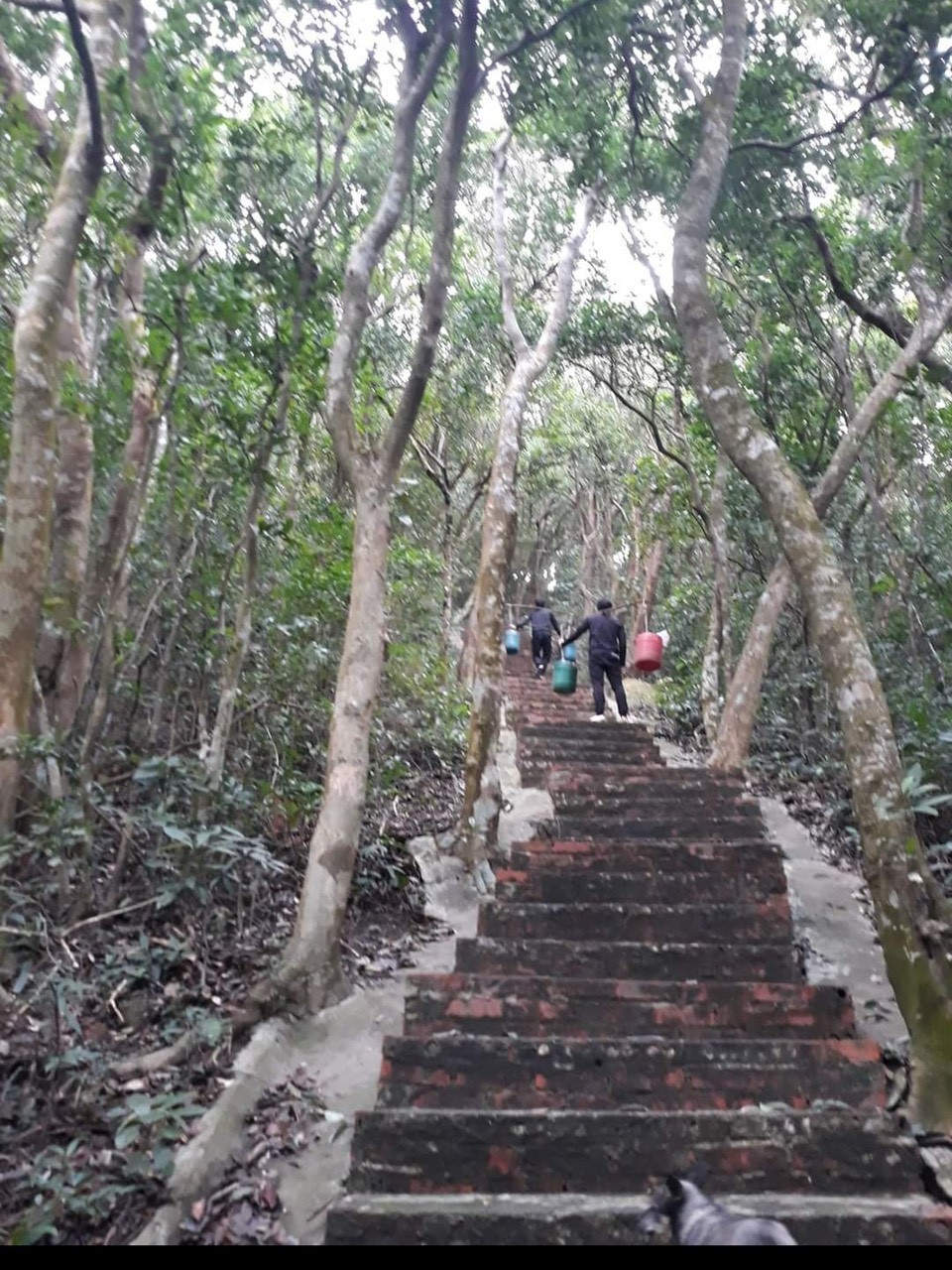 Không điện lưới, không dân, từ chân núi, sát mặt biển lên đến trạm đèn dài gần 1km. Trên quãng đường với độ dốc hơn 30 độ xuyên qua cánh rừng nguyên sinh là 345 bậc thang. Nhu yếu phẩm tiếp tế đều phải tập kết ở chân núi, sau đó chia nhỏ rồi mới được mang vác, gánh gồng lên trạm. Tất cả đều bằng sức người…