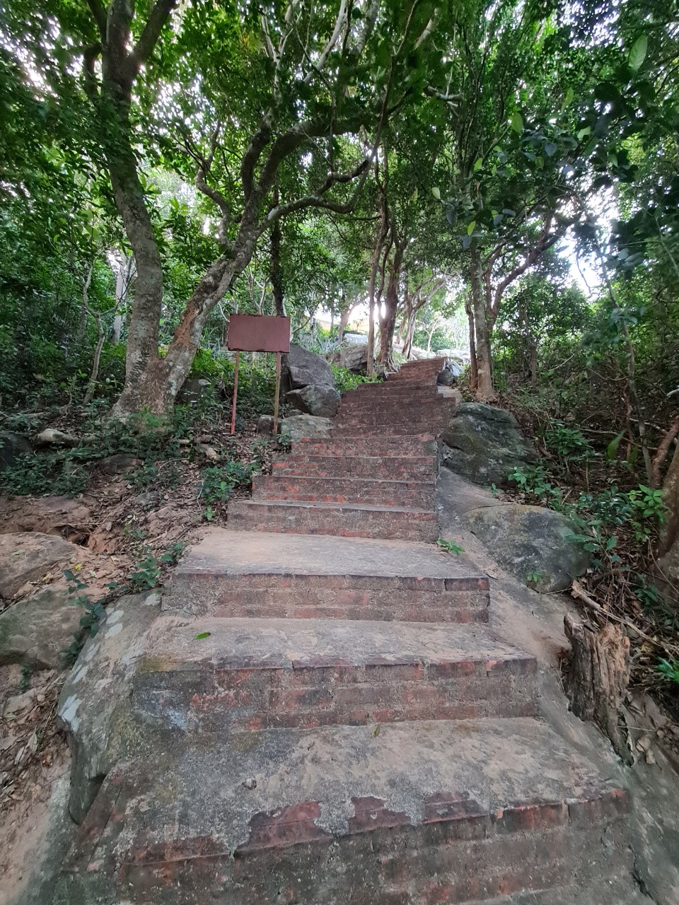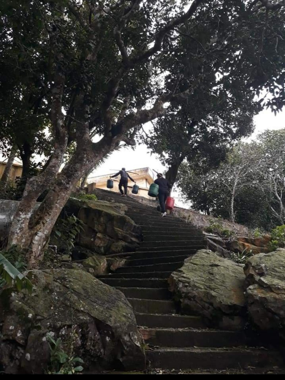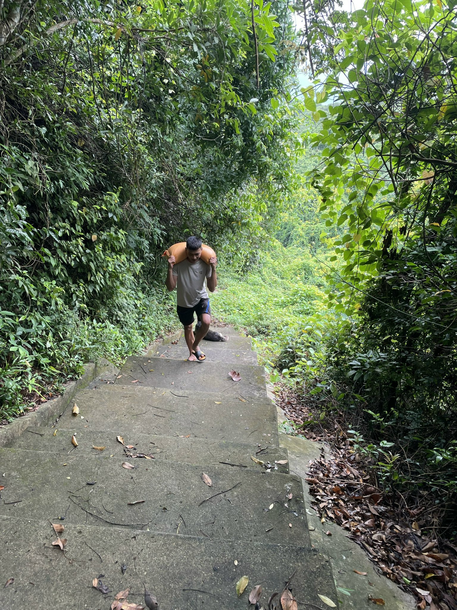 Đường lên hải đăng Hạ Mai với dốc cao, cùng hàng trăm bậc thang, mọi nhu yếu phẩm đều phải vận chuyển bằng sức người
