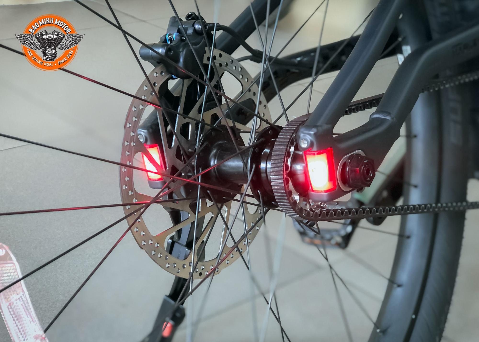 Hệ thống chiếu sáng bao gồm đèn pha trên tay lái, đèn LED trên Logo và đèn hậu ở gắp sau.