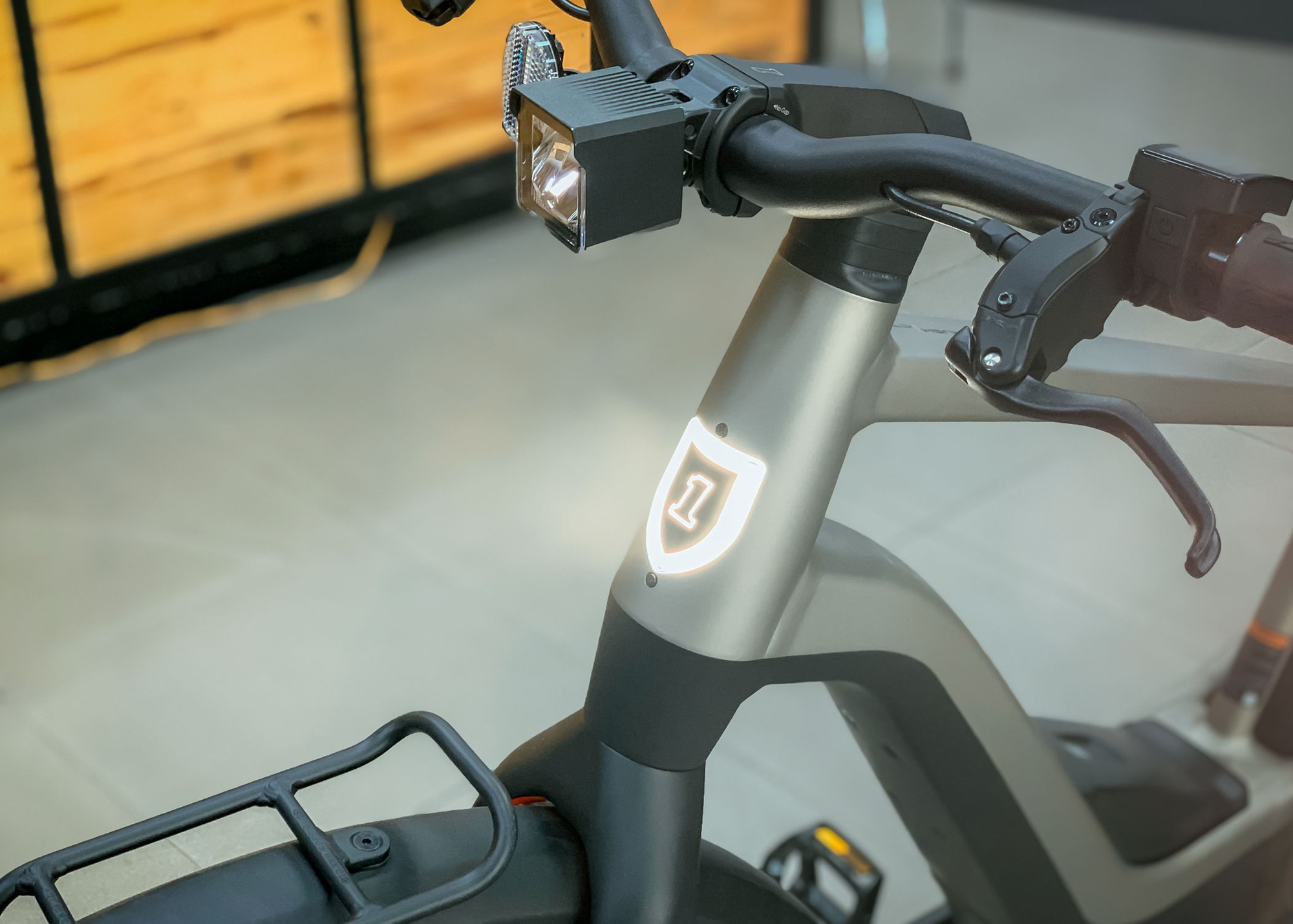 Trên ghi đông là cần phanh Tektro, sử dụng kẹp phanh bốn pít-tông và kết hợp với roto lớn 203 mm, gợi lên nhiều ký ức về xe mô tô hơn. Trên tay lái còn được trang bị thêm màn hình/điều khiển từ xa Brose để điều khiển động cơ, bao gồm một bộ nút và đèn LED nhỏ gọn.
