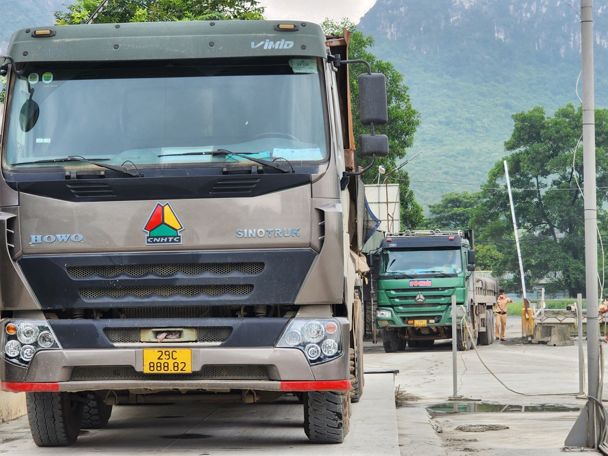 Theo ghi nhận của PV, chỉ ít phút sau, tổ công tác đưa hàng loạt các xe tải "hổ vồ" 29C-893.xxx; 29C-691.xx; 29C-888.xx… về trạm cân điện tử để tiến hành kiểm tra tải trọng.