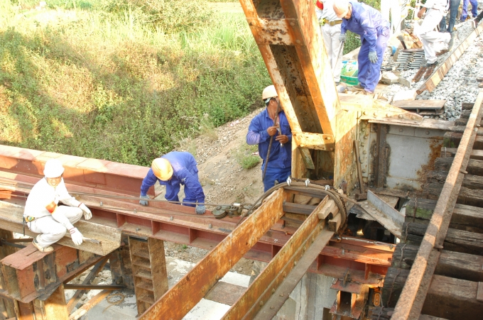Dự kiến đến trưa nay, việc thay thế cầu mới này sẽ hoàn thành và trả đường để các đoàn tàu lưu thông bình thường.