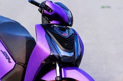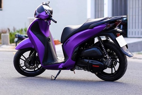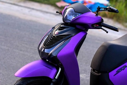 Mẫu xe tay ga Honda SH đời 2013 được sản xuất trong nước, có màu nguyên bản là đỏ. Chủ nhân của nó yêu thích màu tím nhám trên siêu xe Lamborghini nên quyết định sơn lại dàn áo.