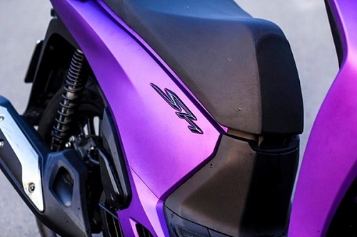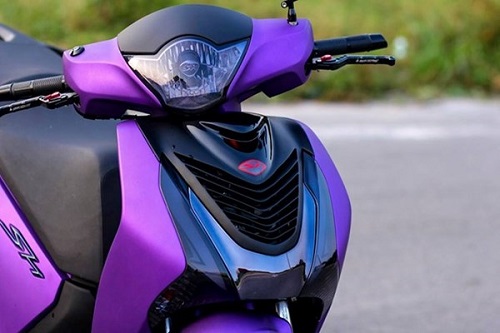 Để hợp với dàn áo màu tím, các bộ phận như mâm xe, gắp, lốc máy, phuộc trước được sơn tĩnh điện vừa để làm mới vừa giúp chịu tác động từ môi trường bên ngoài tốt hơn.