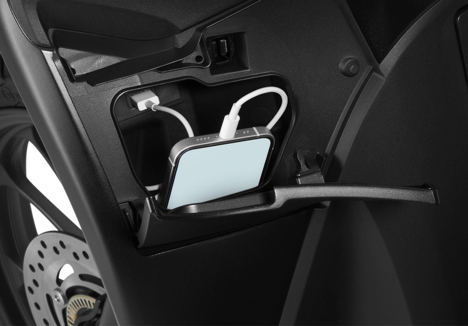 Mẫu xe tay ga cũng được trang bị nhiều tiện ích như hệ thống khóa thông minh Smart Key, hộc để đồ trước bên trái tích hợp cổng sạc USB, cốp đựng đồ dưới yên 18,5 lít, sàn xe rộng cho không gian để chân thoải mái và hệ thống chống bó cứng phanh (ABS).