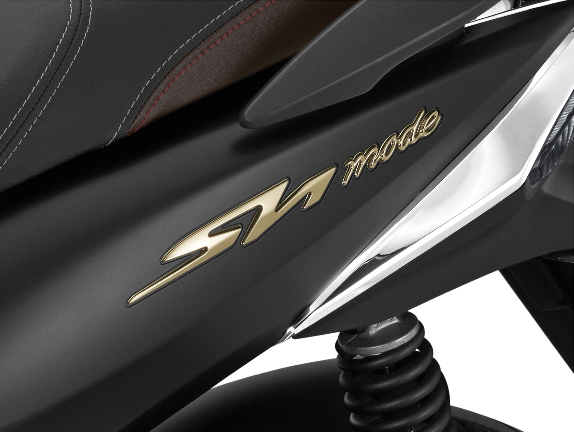 Mẫu xe sử dụng logo "Sh" 3D nổi trên thân xe có hình dáng tựa như logo của dòng xe SH, tiếp nối là logo "mode" thiết kế bo tròn. Đường vân họa tiết dốc màu tạo nên hiệu ứng bề mặt ấn tượng ứng với sự biến đổi khi ánh sáng chiếu tới.