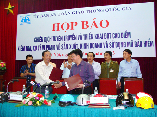 Về các câu hỏi của các nhà báo liên quan đến vấn đề quản lý chất lượng mũ bảo hiểm và hiệu quả của đợt triển khai cao điểm này, đại diện UB ATGTQG, Bộ Khoa học công nghệ và Cục quản lý chất lượng đã lần lượt làm rõ. Phó Chủ tịch UB ATGT quốc gia Nguyễn Hoàng Hiệp nhấn mạnh: Mong muốn của chúng tôi là không có một người đi xe mô tô, xe gắn máy nào bị xử phạt vì hành vi đi xe không đội mũ bảo hiểm đạt chuẩn. Người dân sẽ tự nguyện tìm mua cho mình mũ đạt tiêu chuẩn chất lượng; không xử phạt hành vi đội mũ bảo hiểm giả, mũ không đảm bảo chất lượng, nhưng sẽ xử phạt hành vi không đội mũ bảo hiểm hoặc đội mũ bảo hiểm không cài quai đúng quy cách.